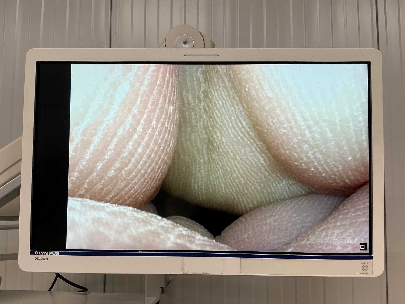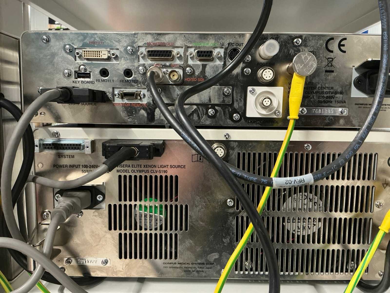 Incl. CLV-S190 Lichtbron, HDTV Compatible 1.2x Camera head, flexibele video-cystoscoop CYF-VH, OEV262H monitor en endoscopie trolley. Camera unit Merk: Olympus Type: OTV-S190 Serienummer: 7681889 Aansluiting: 230V