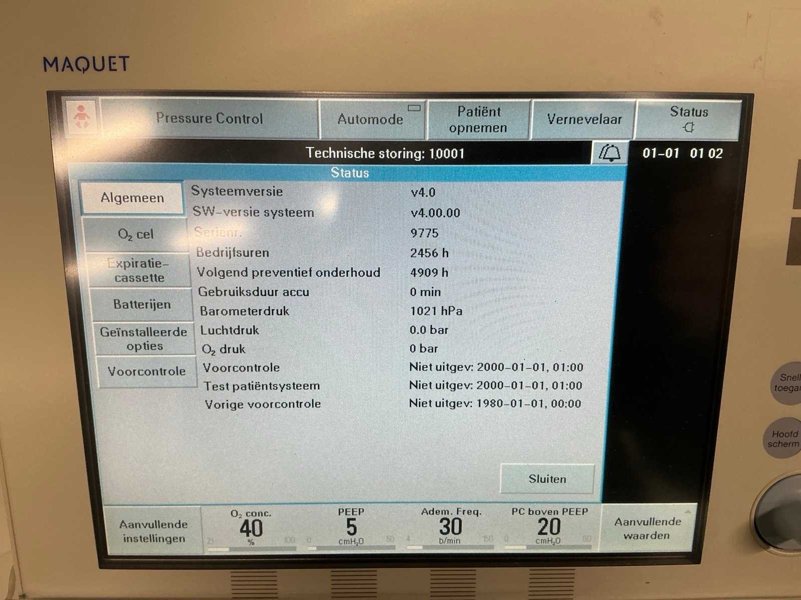Merk: Maquet Type: Servo-S Serienummer: 9775 Aansluiting: 230V