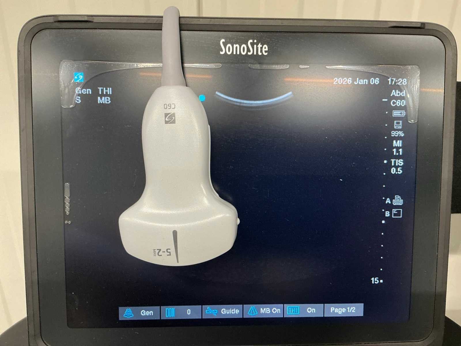 Echo apparaat Merk: Sonosite Type: P21775-20-B Bouwjaar: 2021 Serienummer: Q5BVBW Aansluiting: 230V Transducer 1: HFL38 Transducer 2: C60 Transducer 3: P19