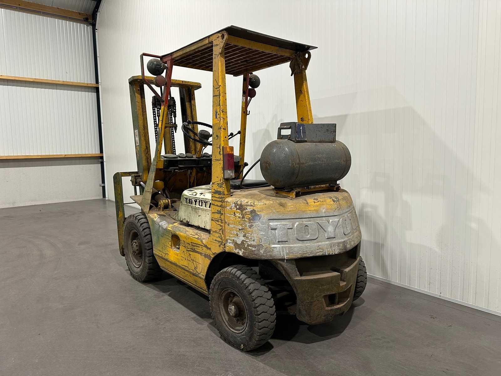 Merk: Toyota Type: 2FG20 Serienummer: 2FG20-13047 Brandstof: LPG Aantal wielen: 4 Duplex mast: true Luchtbanden: true LPG: true