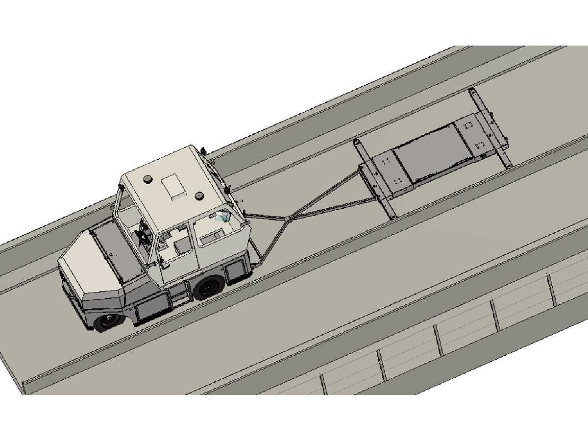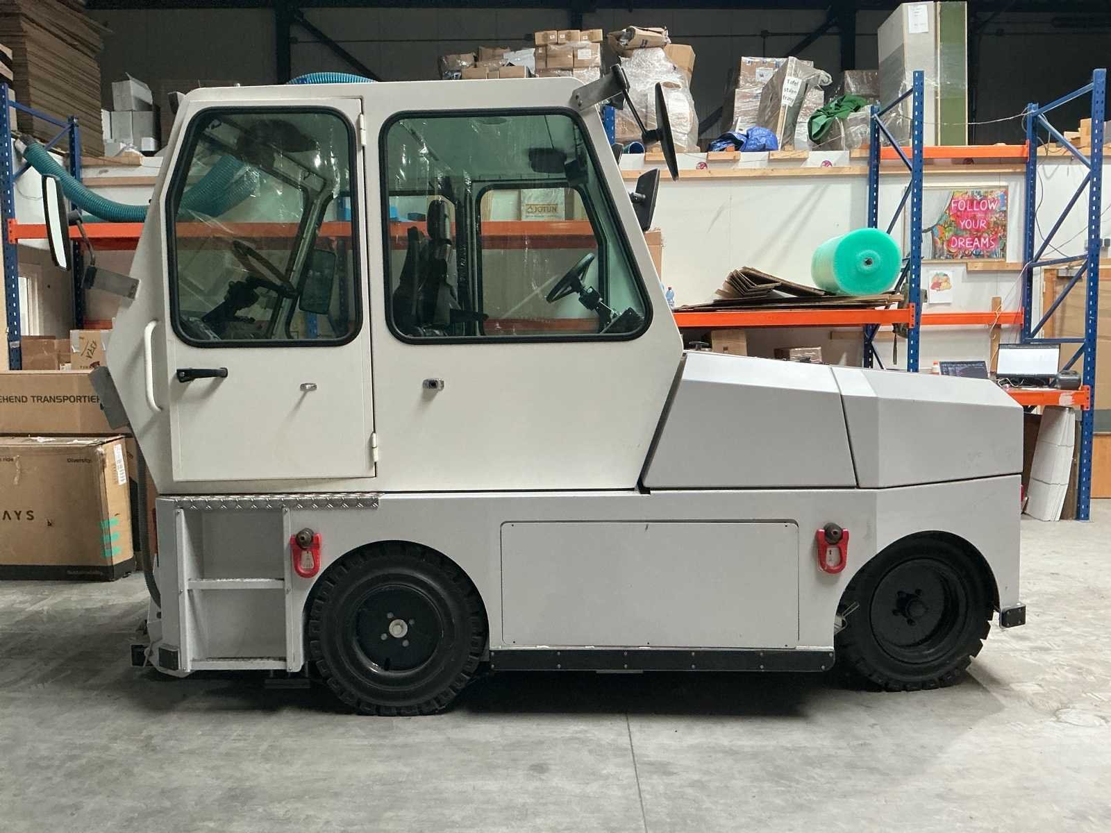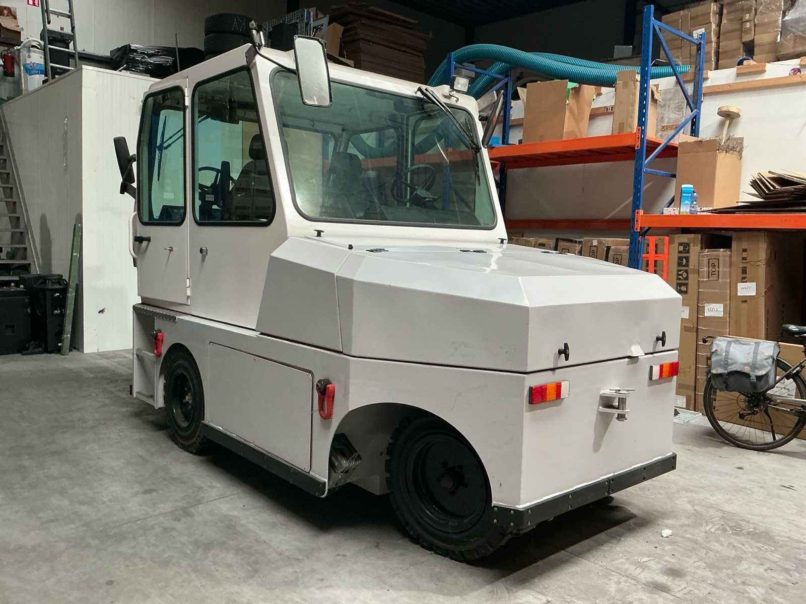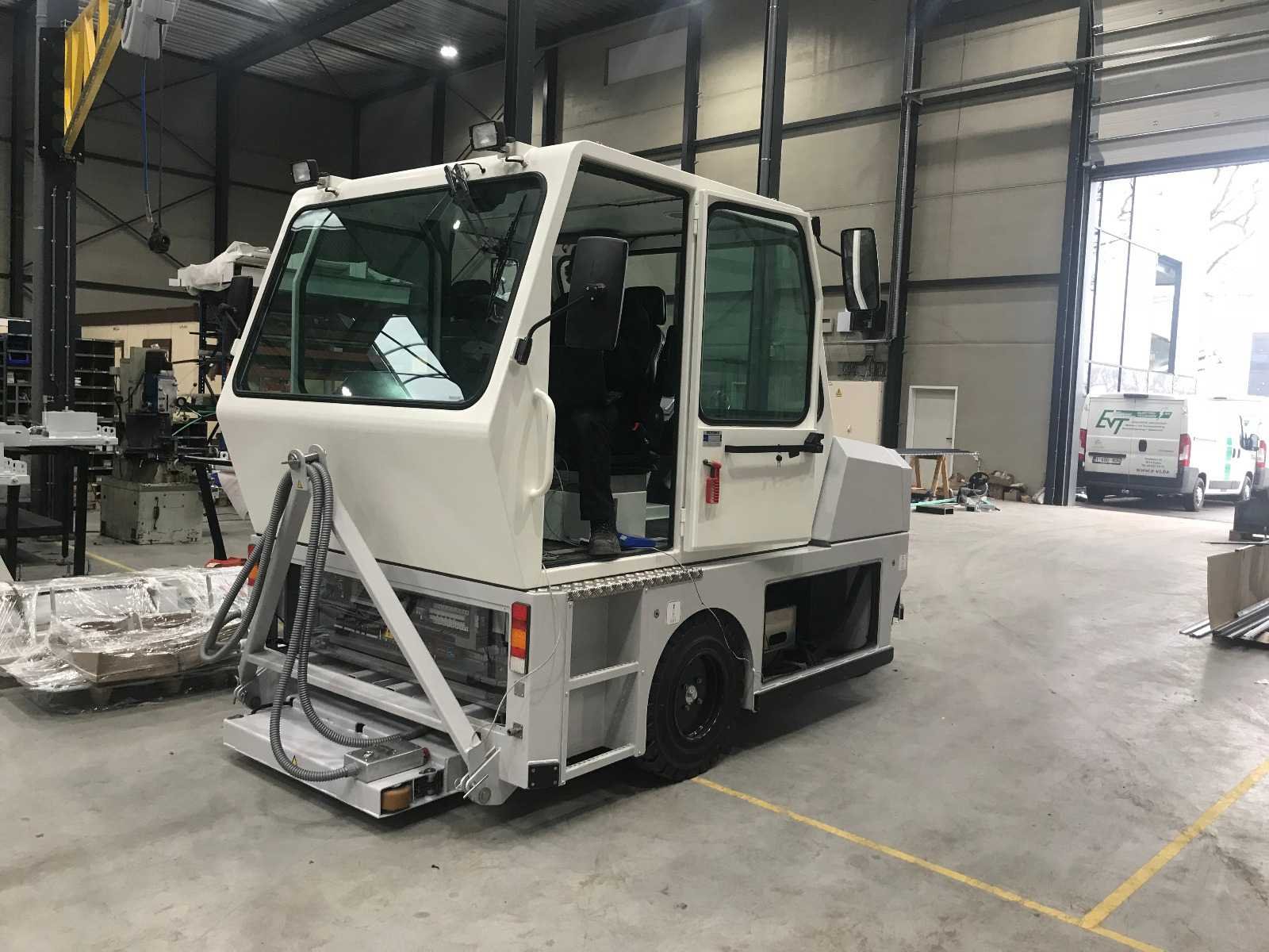 Betreft 1x tugger compleet, 1x pallet reserve batterij, 1x pallet reserve body This vehicle was specially designed for the a middle-east company application, meaning due the barriers along the small lane width of that elevated track a stranded GRT could not be approached sideways. The salvage vehicle for that reason required to be bi-directional as it have to drive “backwards” towards the GRT, deploy the lifting platform (carried under the salvage vehicle) and connect to the salvage vehicle and drive “forward” towing the GRT on the platform. The lifting platform has guidance wheels in order to prevent the GRT on the platform being damaged by the (concrete) barriers along the track. The guidance wheels follow the curvature of those barriers. Merk: AVT Type: GRT Rescue Towing Vehicle Bouwjaar: 2017 Serienummer: 2017 Elektrisch: true Motorvermogen (kW): 25kW Trekcapaciteit: 4500kg Eigen gewicht: 5300kg Totale afmeting L: 4100mm Totale afmeting Breedte: 2100mm Totale afmeting Hoogte: 2700mm