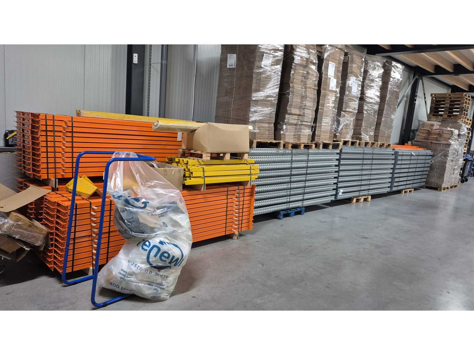 <table> <tbody><tr><th>Aantal</th><th>Artikelcode</th><th>Omschrijving</th></tr> <tr><td>56</td><td>EPFR30001100852G</td><td>Stow frame palletstelling 3000x1100mm. Galva</td></tr> <tr><td>56</td><td>EPNP1</td><td>Stow palletstelling nivelleerplaat 120x140x1mm.</td></tr> <tr><td>28</td><td>EPNP3</td><td>Stow palletstelling nivelleerplaat 120x140x3mm.</td></tr> <tr><td>152</td><td>EPPNB04802700O</td><td>Stow ligger 2700x100x50x1.5 Oranje</td></tr> <tr><td>304</td><td>EPVHS</td><td>Stow palletstelling borgpen</td></tr> <tr><td>168</td><td>EPKBM12100</td><td>Stow palletstelling doorsteekanker M12x100mm.</td></tr> <tr><td>50</td><td>EPAS300</td><td>Stow palletstelling afstandstuk 300mm.</td></tr> <tr><td>100</td><td>EPBV10X25</td><td>Stow palletstelling bout voetplaat M10x25mm.</td></tr> <tr><td>100</td><td>EPMV10</td><td>Stow palletstelling moer voetplaat M10</td></tr> <tr><td>1</td><td>EPHB400</td><td>Stow hoekbeschermer hoogte 400mm. Kleur geel</td></tr> <tr><td>6</td><td>EPFBN2600G</td><td>Stow framebeschermer Palletstelling 2600mm.</td></tr> <tr><td>1</td><td>EPFBN3300G</td><td>Stow framebeschermer Palletstelling 3300mm.</td></tr> <tr><td>1</td><td>MONTAGE</td><td>Voormontage frames</td></tr> <tr><td>3</td><td>SPECPSA3</td><td>Specificatiebordje magazijnstelling</td></tr> </tbody></table> Merk: Stow Bouwjaar: 2025 Aantal staanders: 56 Aantal liggers: 152 Max. sectiebelasting: 1664kg Demontabel: true Hoogte: 300cm