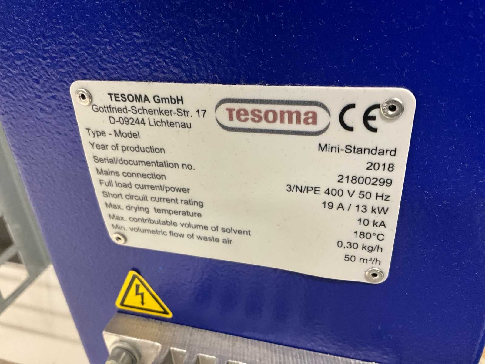 Vermogen 13 kW; airflow 50m3/h; zonder afvoerkanaal Merk: Tesoma Type: Mini-Standaard Bouwjaar: 2018 Serienummer: 21800299 Werkbreedte: 600mm Digitale besturing: true Aansluiting: 400V Totale afmeting L: 2200mm Totale afmeting Breedte: 1070mm Totale afmeting Hoogte: 1250mm