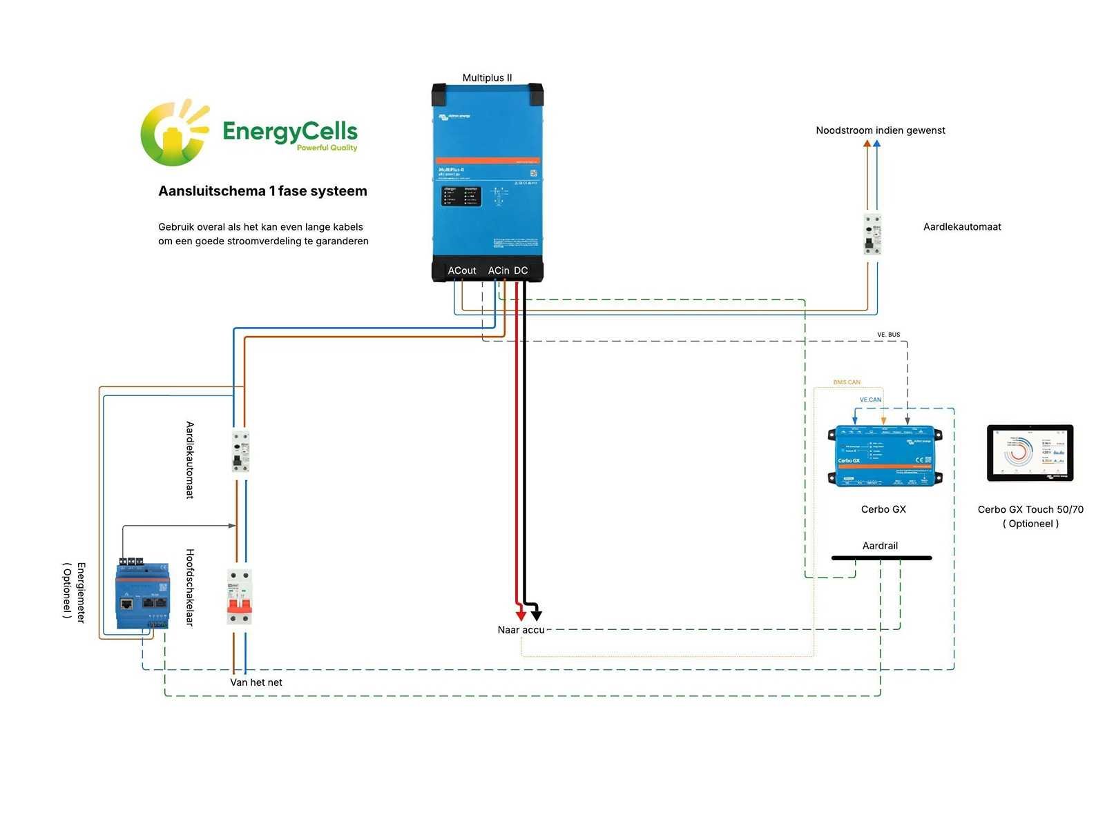 Nieuw Victron Energy Opslagsysteem – 4K5 MultiPlus-II met 15 kWh LFP Accu Aangeboden wordt een compleet energieopslagsysteem van Victron Energy, bestaande uit een 4K5 MultiPlus-II omvormer/lader in combinatie met een 15 kWh lithium-ijzerfosfaat (LFP) accu. Dit systeem is uitermate geschikt als thuisbatterij, voor zonne-energieopslag, noodstroomvoorziening of off-grid en hybride installaties. Dankzij de hoge efficiëntie en lange levensduur van de LFP-accu is dit een betrouwbare en toekomstbestendige energieoplossing. ✅ Voordelen 4K5Victron MultiPlus-II omvormer/lader 15 kWh LFP accu: veilig, onderhoudsarm en lange levensduur Geschikt voor on-grid, hybride en off-grid toepassingen Slim energiebeheer en monitoring mogelijk (VRM) Professionele kwaliteit voor particulier en zakelijk gebruik 💡 Zeer interessant voor installateurs, bedrijven en particulieren die hoogwaardige energieopslag zoeken wat al volledig is ingesteld en gemonteerd. Systeem is plug and play Het totale omvormvermogen bedraag 4kW (4000W) en een accu capaciteit van 15kWh. Het systeem komt met 5 jaar garantie op het Victron apparatuur en accu. Het systeem werkt met alle PV systemen Handel op de energie markt is mogelijk met dit systeem. U krijgt na aanschaf 3 maand software support van verkoper. Merk: Victron Type: 4K5 15kWh LFP Bouwjaar: 2026 Vermogen: 4000W Aansluiting: 230V 1-fase: true Totale afmeting L: 996mm Totale afmeting Breedte: 720mm