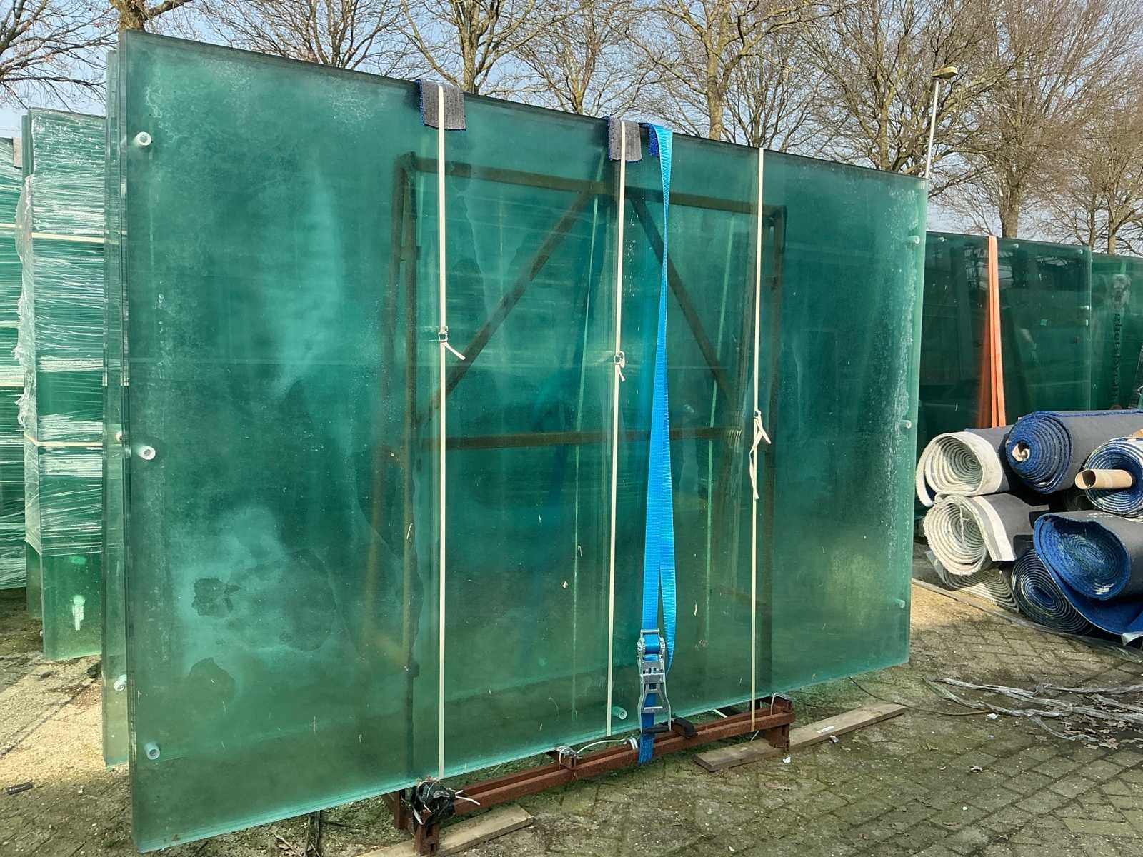 Voorzien van: 5x bok met 18 stuks glasplaat. Afmeting l: 3000mm Afmeting b: 2000mm Eigen gewicht: 180kg