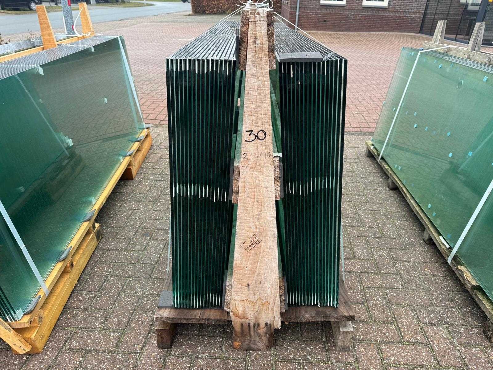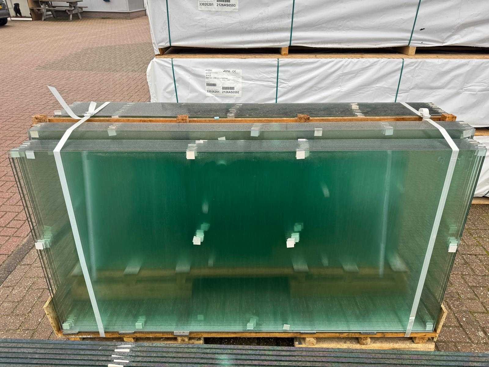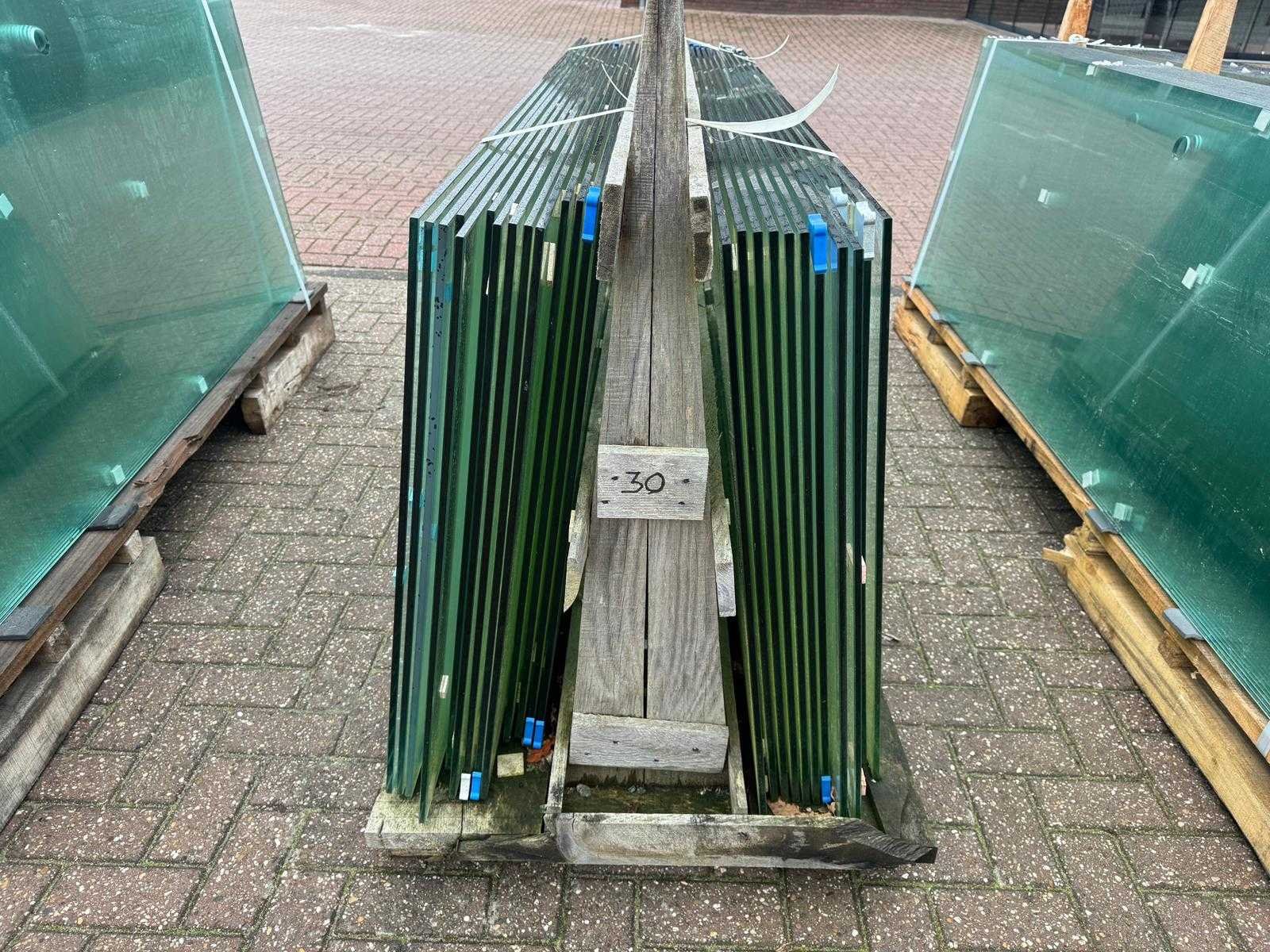 180 stuks ramen gehard veiligheidsglas 10mm dik • Diverse afmetingen • Totaal: 180 ramen • Conditie: partijhandel – kan lichte strepen, vlekjes of vegen bevatten • Verpakking: op pallet met glas • Opmerking: foto van overkapping is ter illustratie • Heftruck is aanwezig voor het afhalen