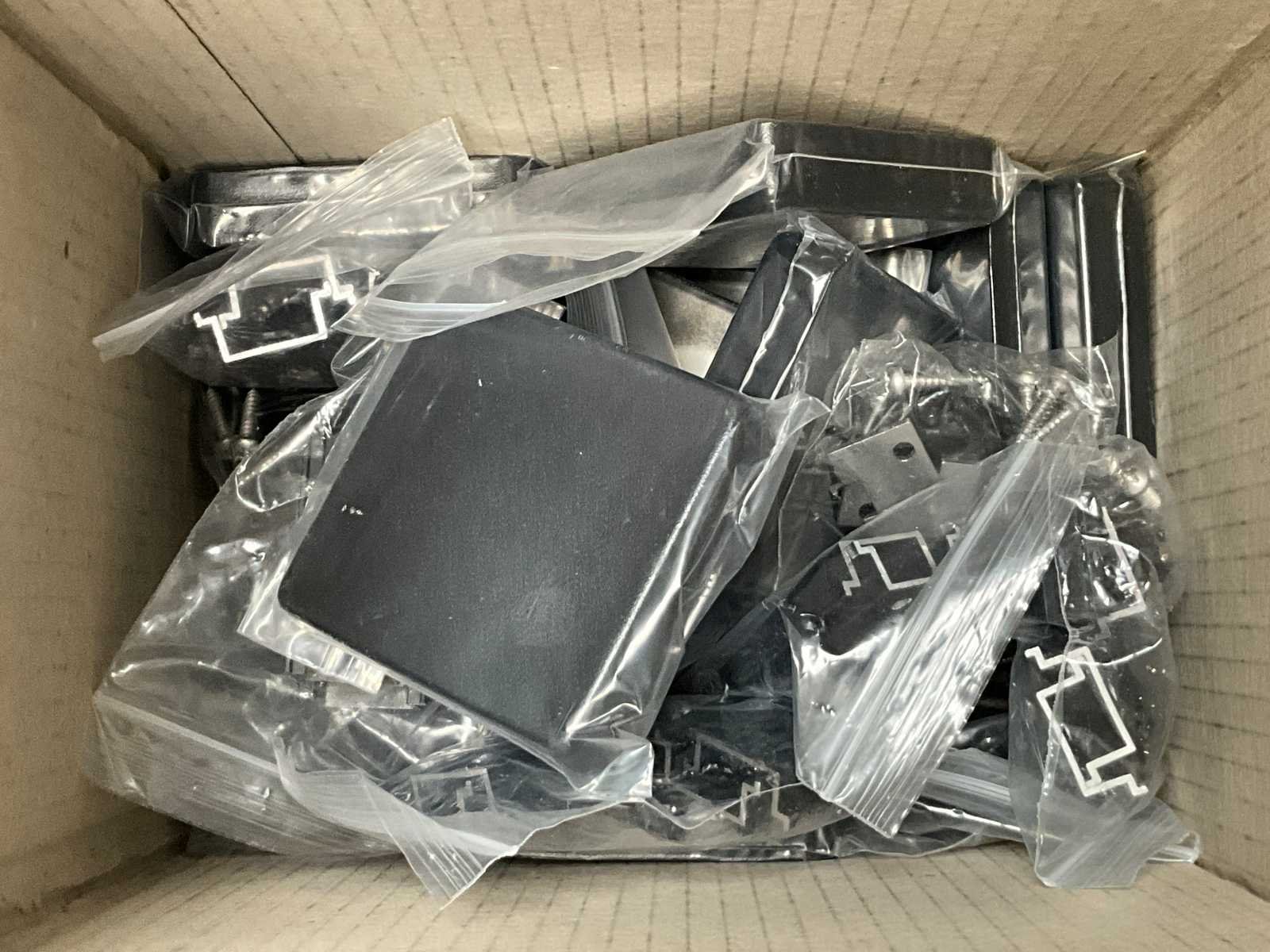 Bestaande uit totaal 180 composiet schutting planken van 182 cm, 15 aluminium onderprofielen, 15 aluminium bovenprofielen, 60 verstevigingsprofielen, 15 montagesets, 16 aluminium tuinpalen 300 cm en 16 afdekkappen; ongebruikt in verpakking. Goed voor het opbouwen van 15 schuttingen van +/- 180 cm hoogte en totaal 28,12 meter. Merk: Rhombus Model: Zwart