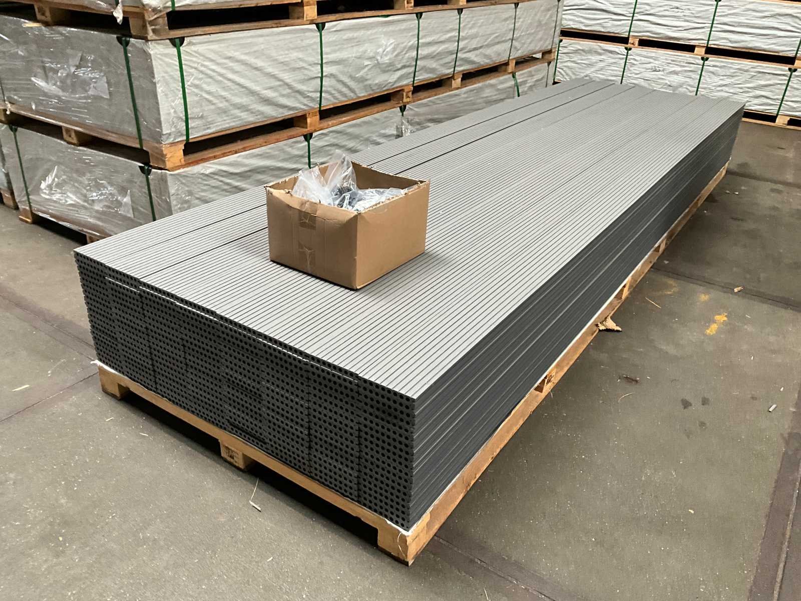 Voorzien van ronde gaten en totaal 21x100 kunststof montageclips + schroeven; ongebruikt Lengte: 400cm Breedte: 145mm