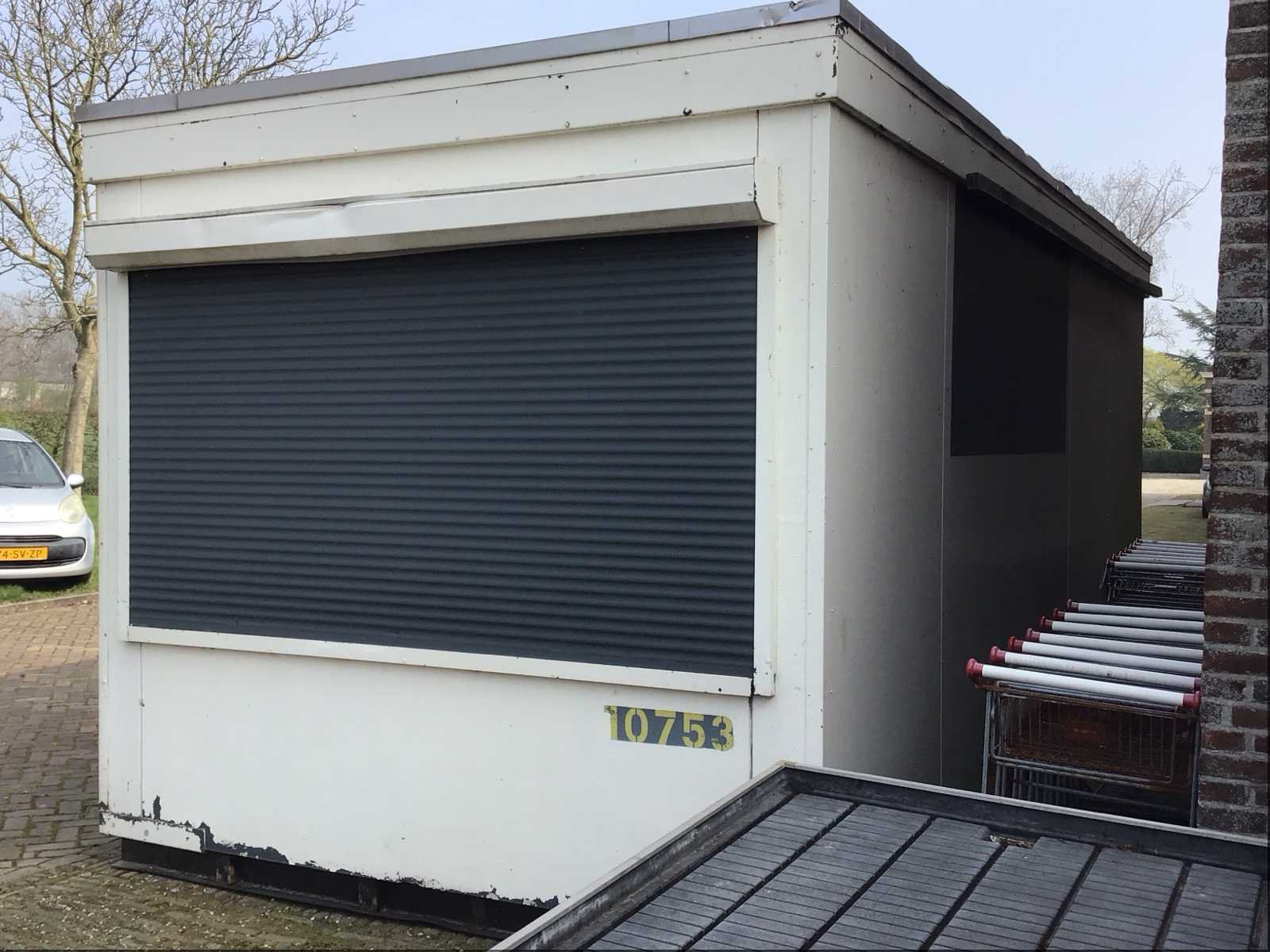Vv: elektra,kachel, water, tl verlichting meubilair en rolluik Merk: Mobiel Kantoor Type: Unit Afmeting l: 6550mm Afmeting b: 3000mm Afmeting h: 2870mm
