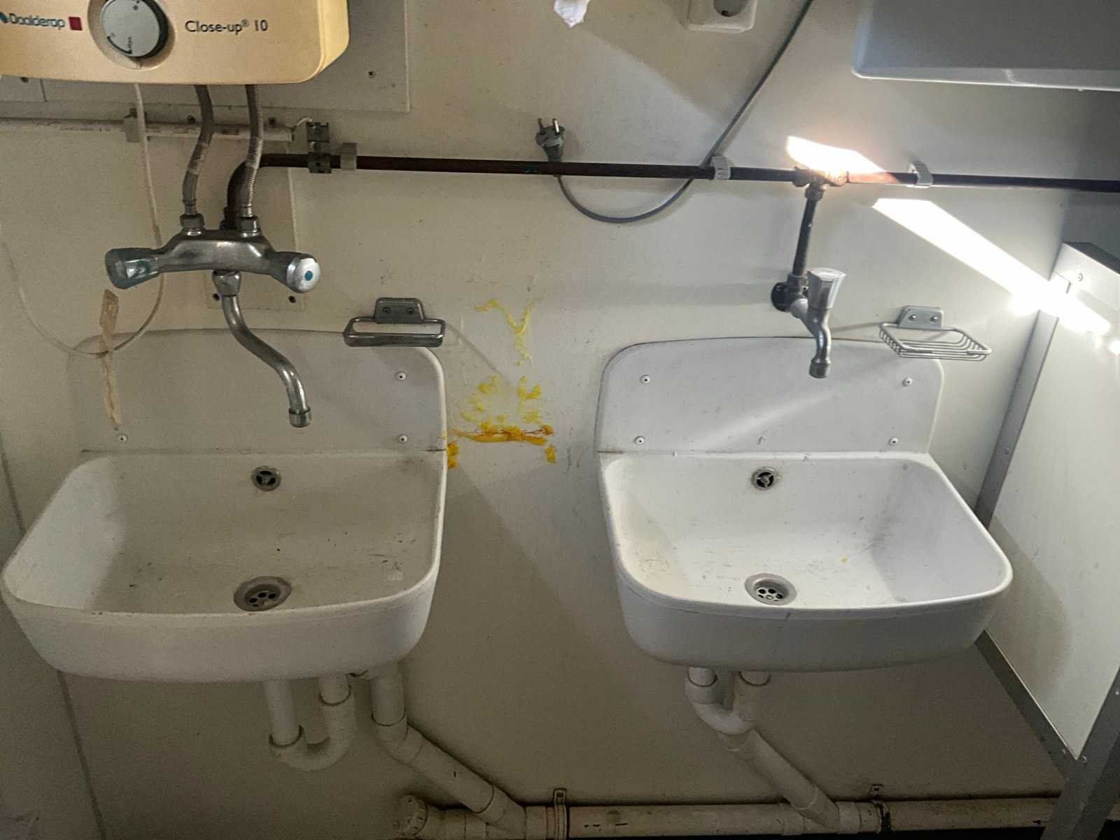 Voorzien van: 2x urinoir, hijsframe, lepelopname, verwarming, groepenkast Merk: Brouwer Afmeting l: 4020mm Afmeting b: 2000mm Afmeting h: 2450mm Aantal ramen: 4 Aantal toiletten: 2 Aantal wastafels: 4 Totale afmeting L: 4020mm Totale afmeting Breedte: 2000mm Totale afmeting Hoogte: 2450mm