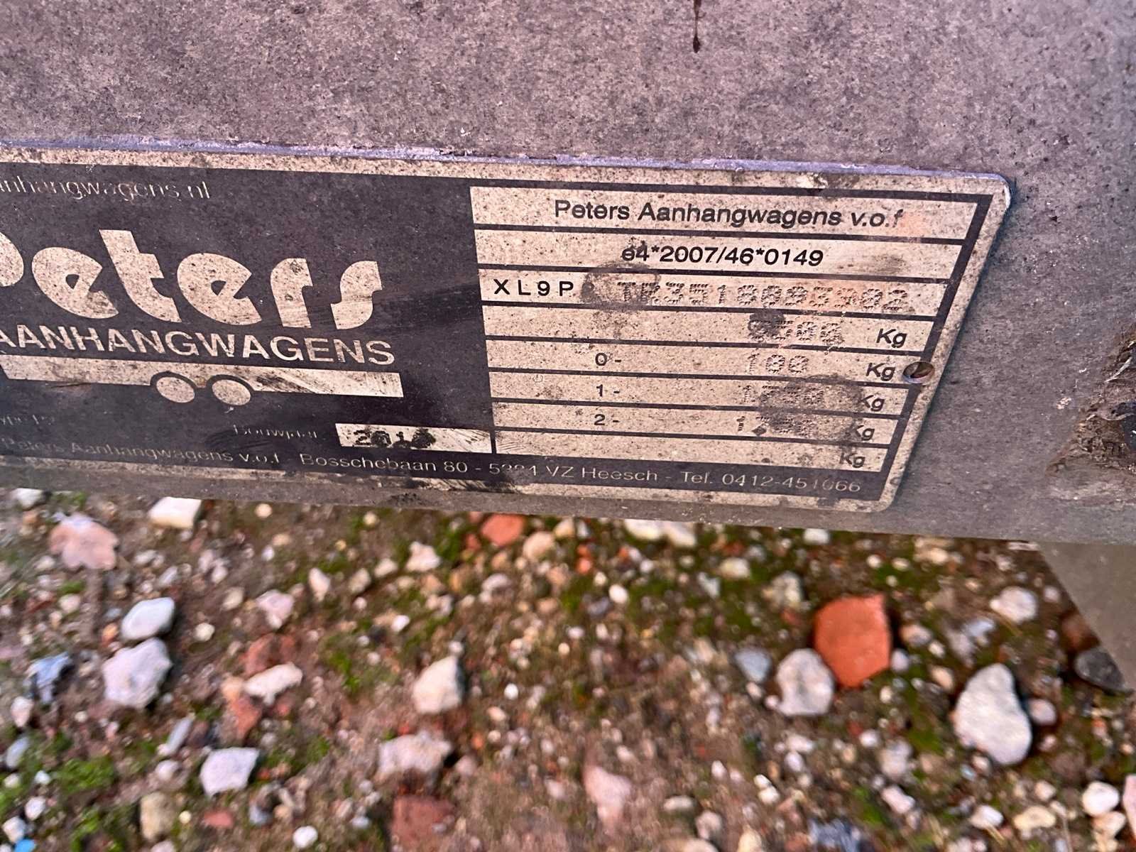Merk: Peters Type: P2 Bouwjaar: 2011 Chassisnummer: XL9P2TR3518093902 Aantal assen: 2 Laadbak afmeting l: 350cm Laadbak afmeting b: 153cm Ledig gewicht: 893kg Laadvermogen: 2107kg Datum eerste toelating: 2018-07-11 Datum eerste toelating (NL): 2018-07-11 Kenteken: 14-WS-TF Nationaliteit documenten: NL