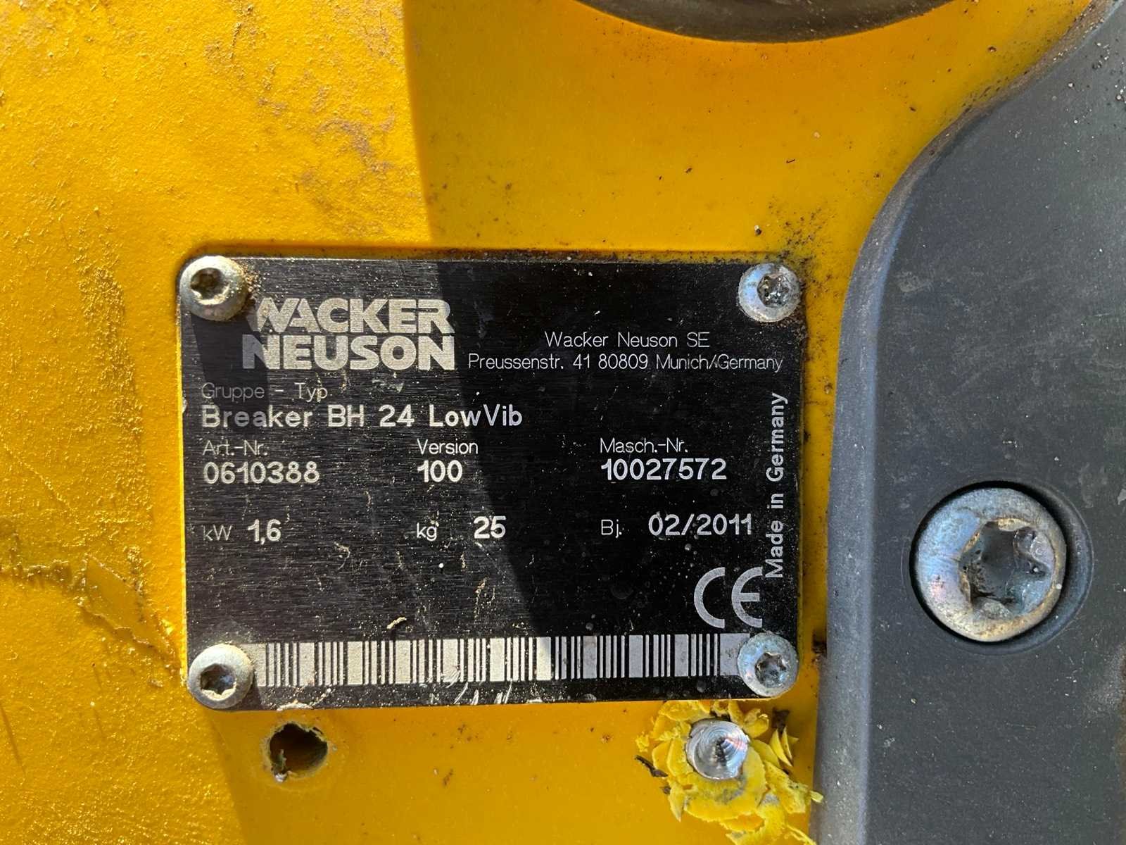 Vermogen: 1,6 kW Merk: Wacker Neuson Type: Breaker BH 24 LowVib Bouwjaar: 2011 Eigen gewicht: 25kg