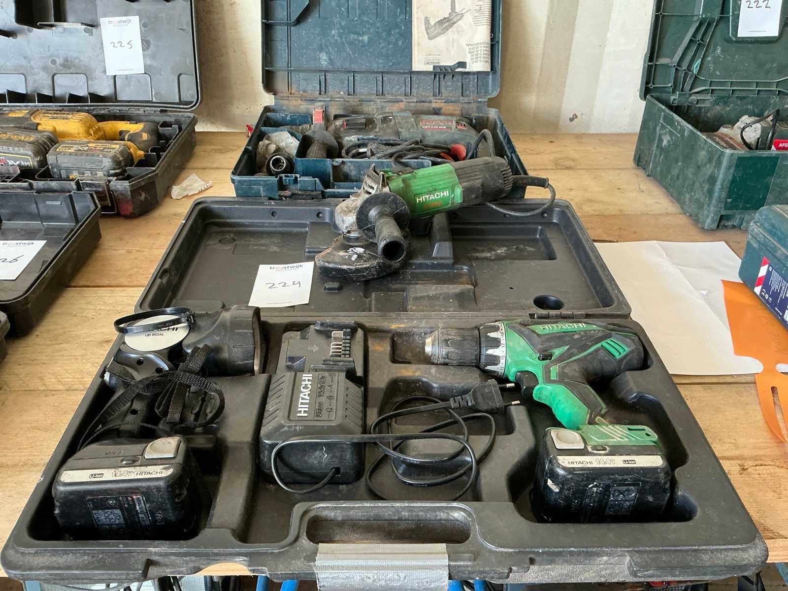 Inclusief: Bosh boorhamer, Hitachi haakse slijpmachine 230v. Merk: Hitachi Type: DS14DJL Accu lader: true Met koffer: true Aantal accu's: 2