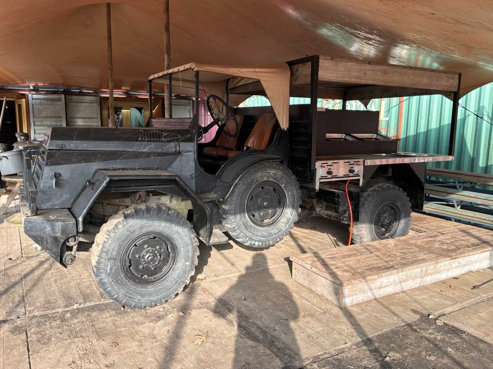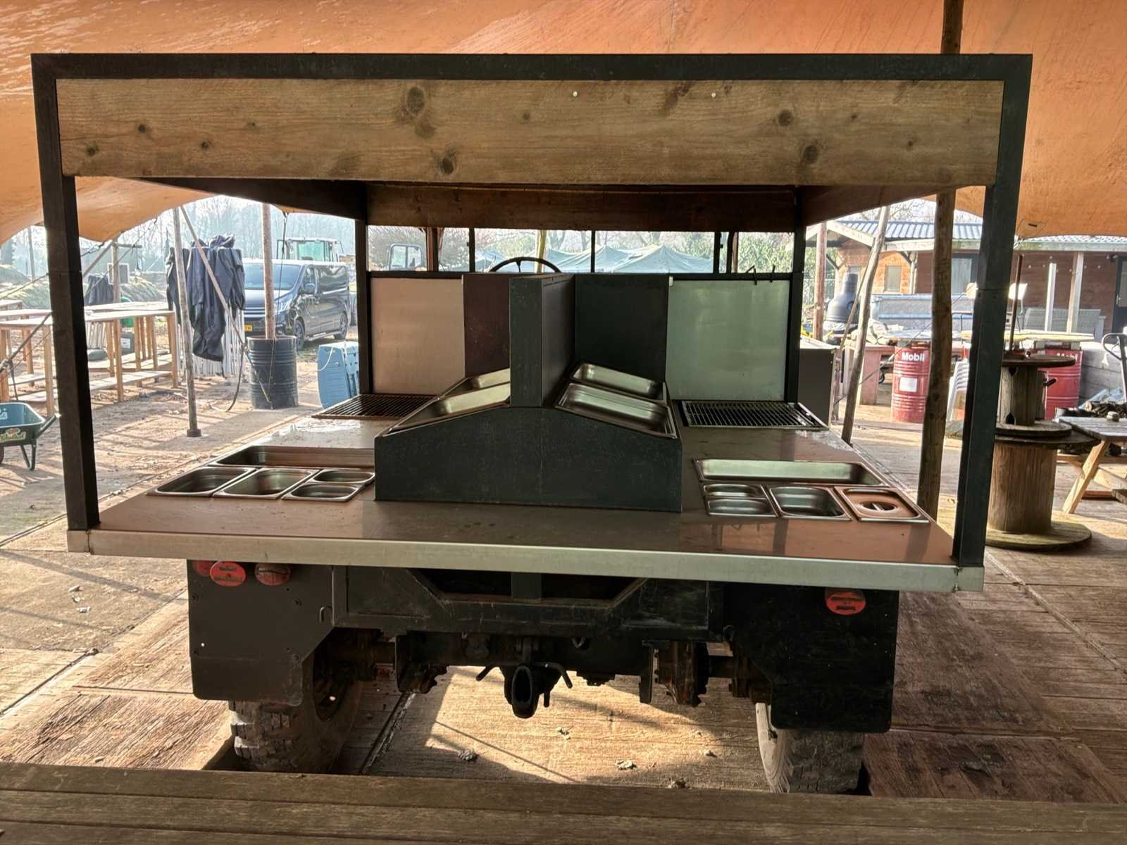 Aan beide kanten voorzien van: gas bbq en diverse gastronoombakken, Merk: DAF Aantal assen: 2 Totale afmeting Lengte: 4900mm Totale afmeting Breedte: 2020mm Totale afmeting Hoogte: 2200mm