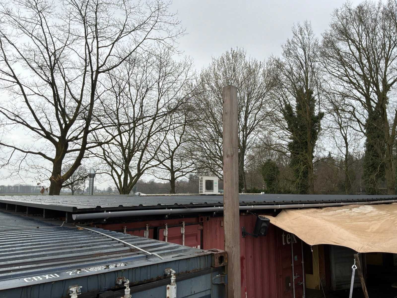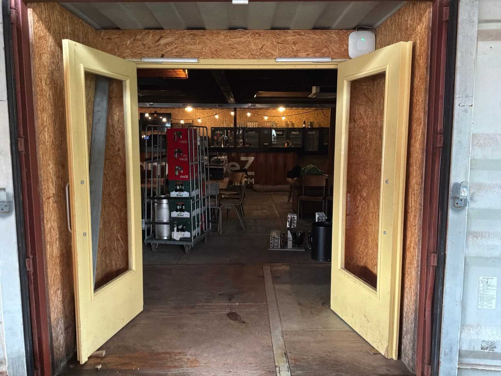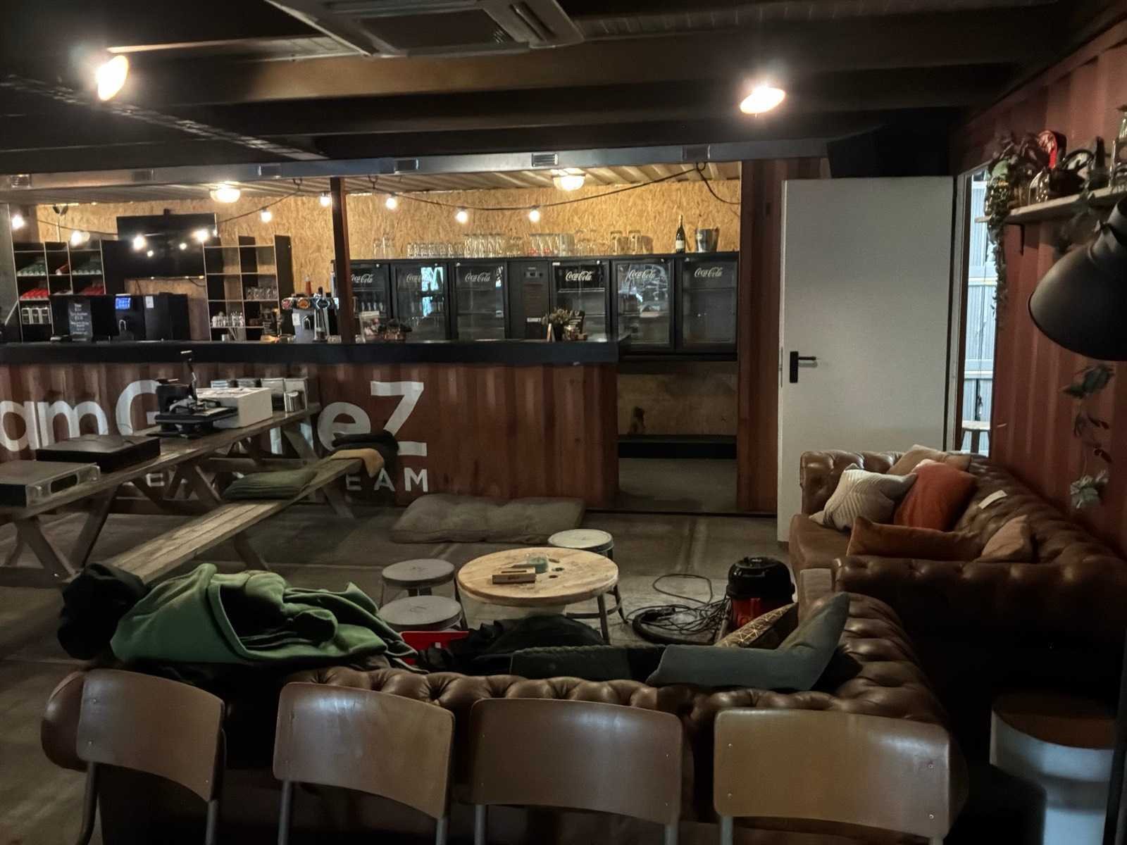 Bestaande uit 4 zeecontainers met in het midden een dak erop gemonteerd, voorzien van: betonnen vloerplaten, luchtbehandeling installatie, bar gedeelte, dames en heren toilet, kantoorruimte, Schakelunit: true Afmeting l: 16000mm Afmeting b: 12000mm Afmeting h: 2800mm Toilet: true