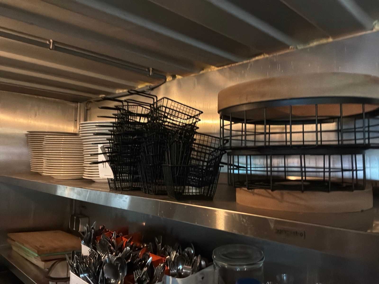 Inclusief 2x RVS schap, servies en bestek. Merk: ggmGastro Materiaal: Rvs Totale afmeting Breedte: 200mm Totale afmeting L: 70mm Totale afmeting Hoogte: 88mm