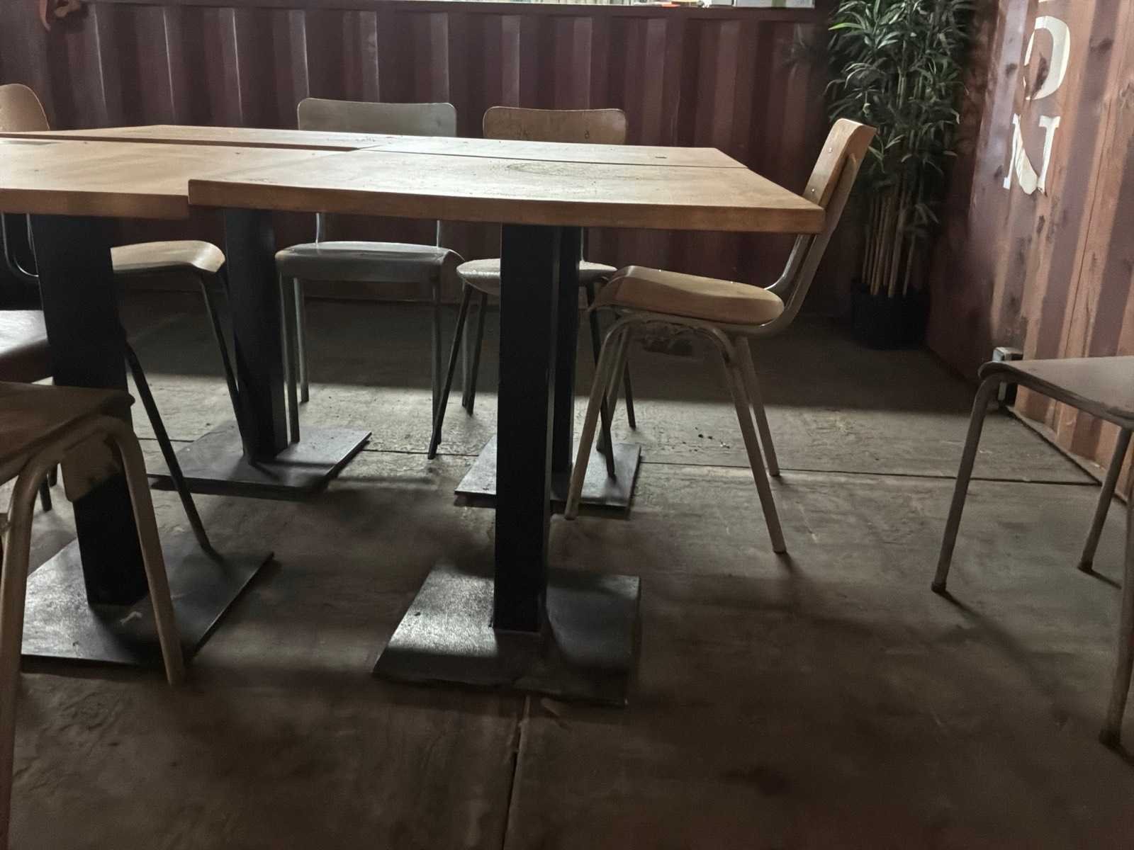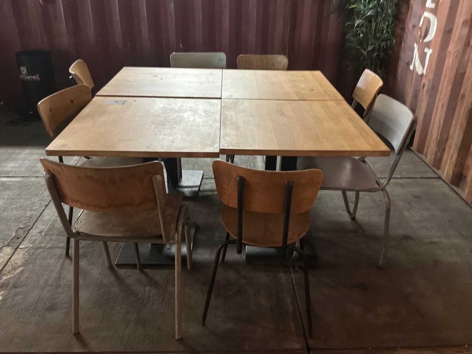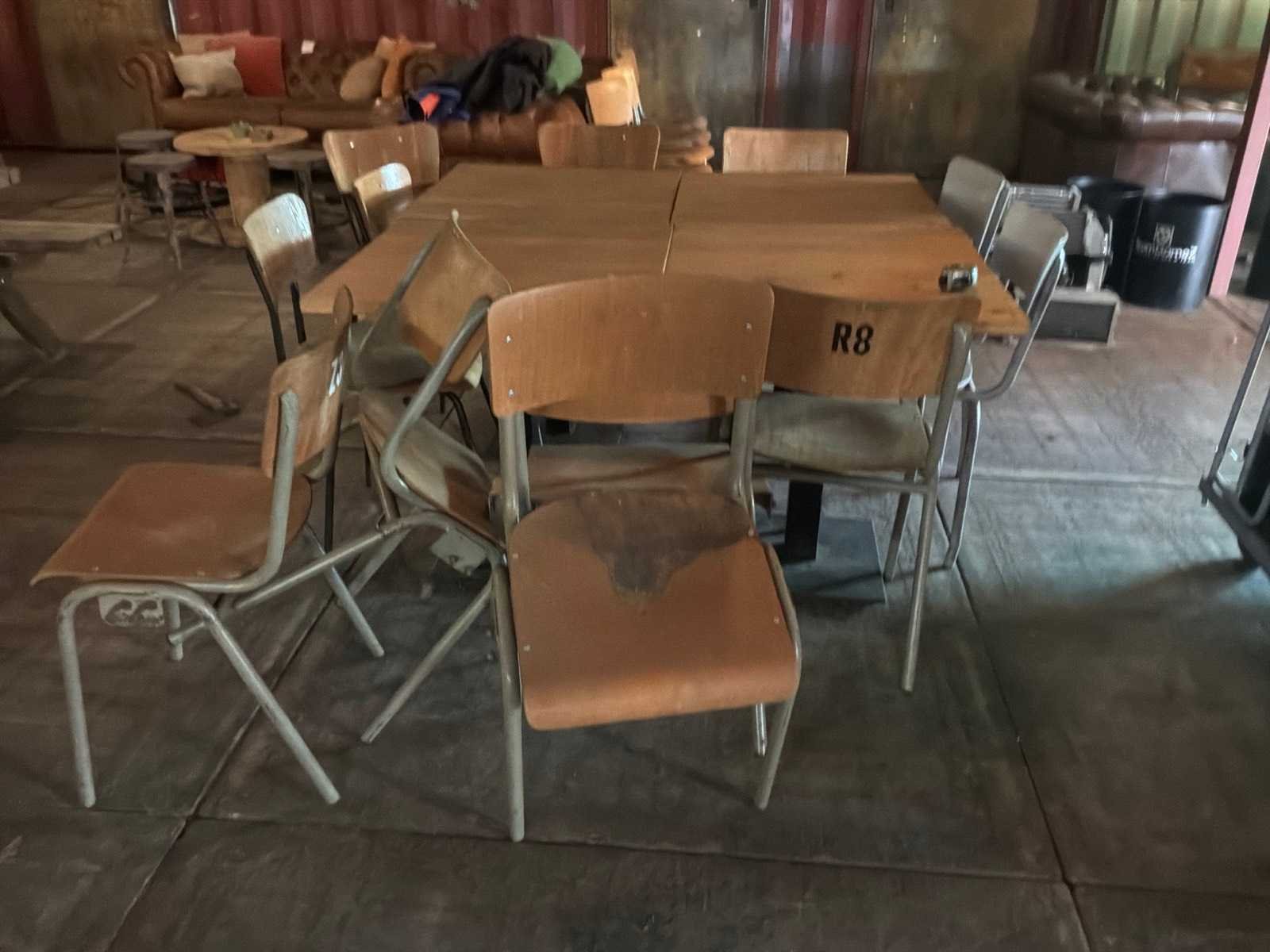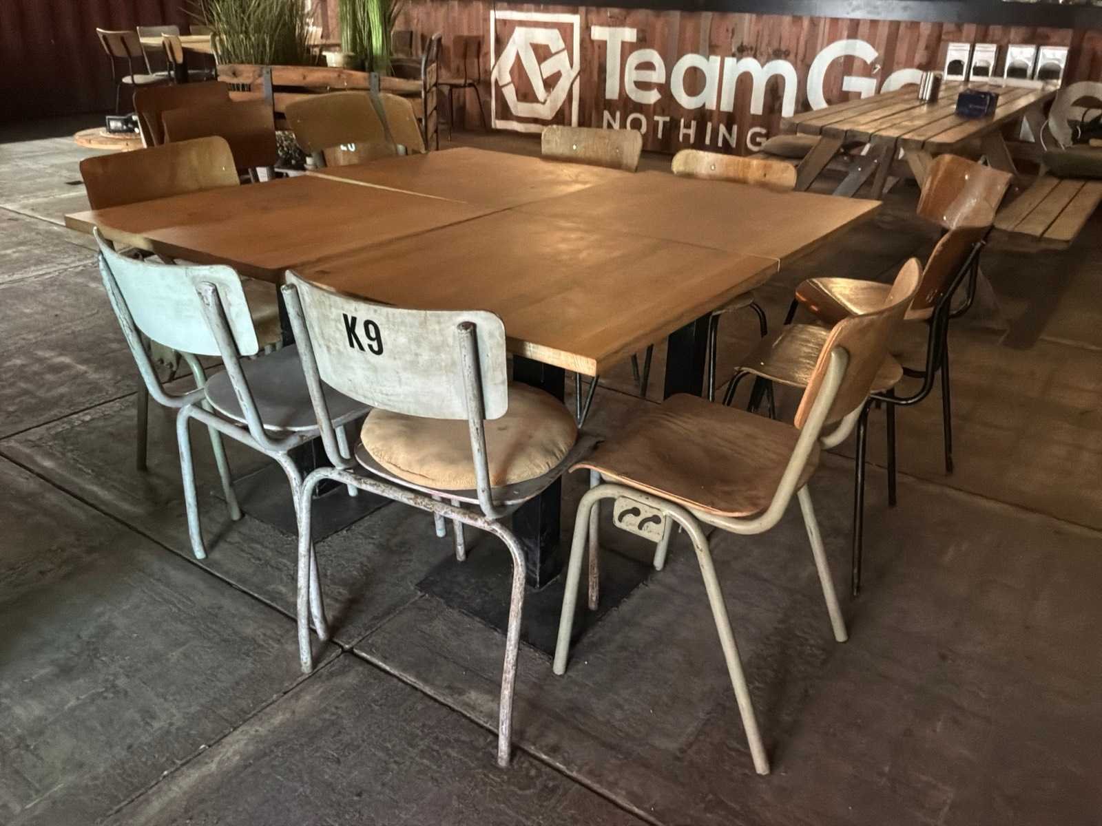 Inclusief 28 stoelen. Lengte: 70cm Breedte: 70cm Hoogte: 76cm Materiaal: Hout / metaal