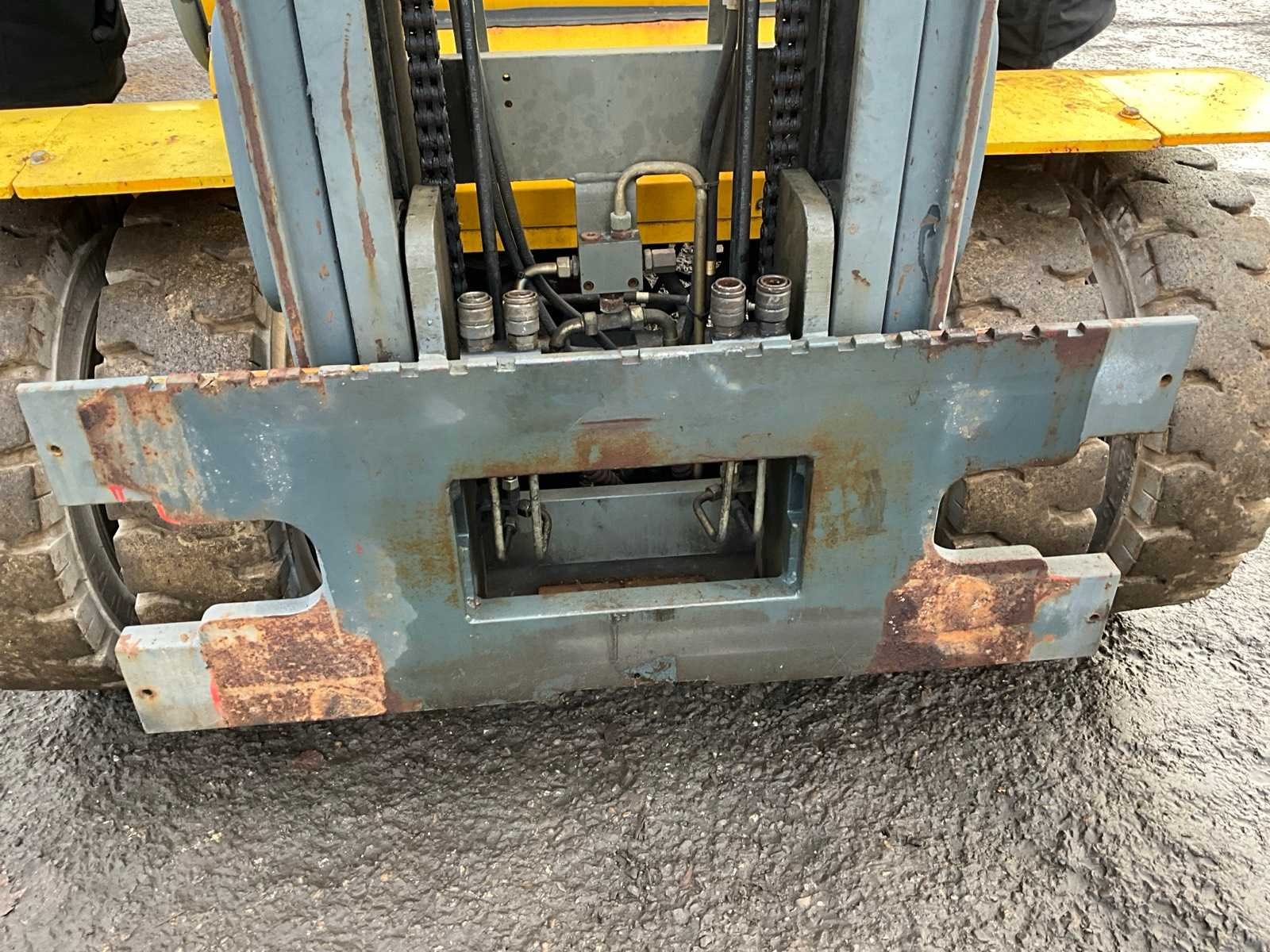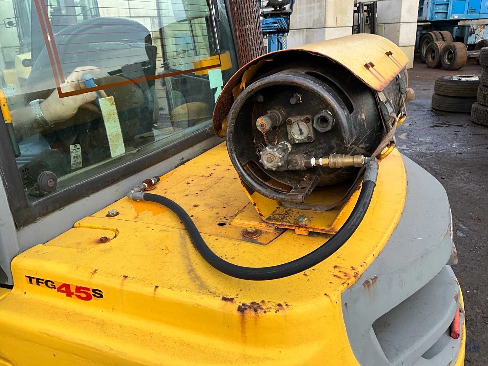 2x extra hydraulische functie op vorkenbord, inclusief gasfles, let op: gasfles leeg Merk: Jungheinrich Type: TFG45S Brandstof: LPG Mast: Duplex Soort band: Volrubber banden Aantal wielen: 4 Afgelezen urenstand: 2597 Duplex mast: true Hefvermogen: 2865kg Max. hefhoogte: 4500mm Totale afmeting L: 3000mm Totale afmeting Breedte: 1900mm Totale afmeting Hoogte: 3050mm