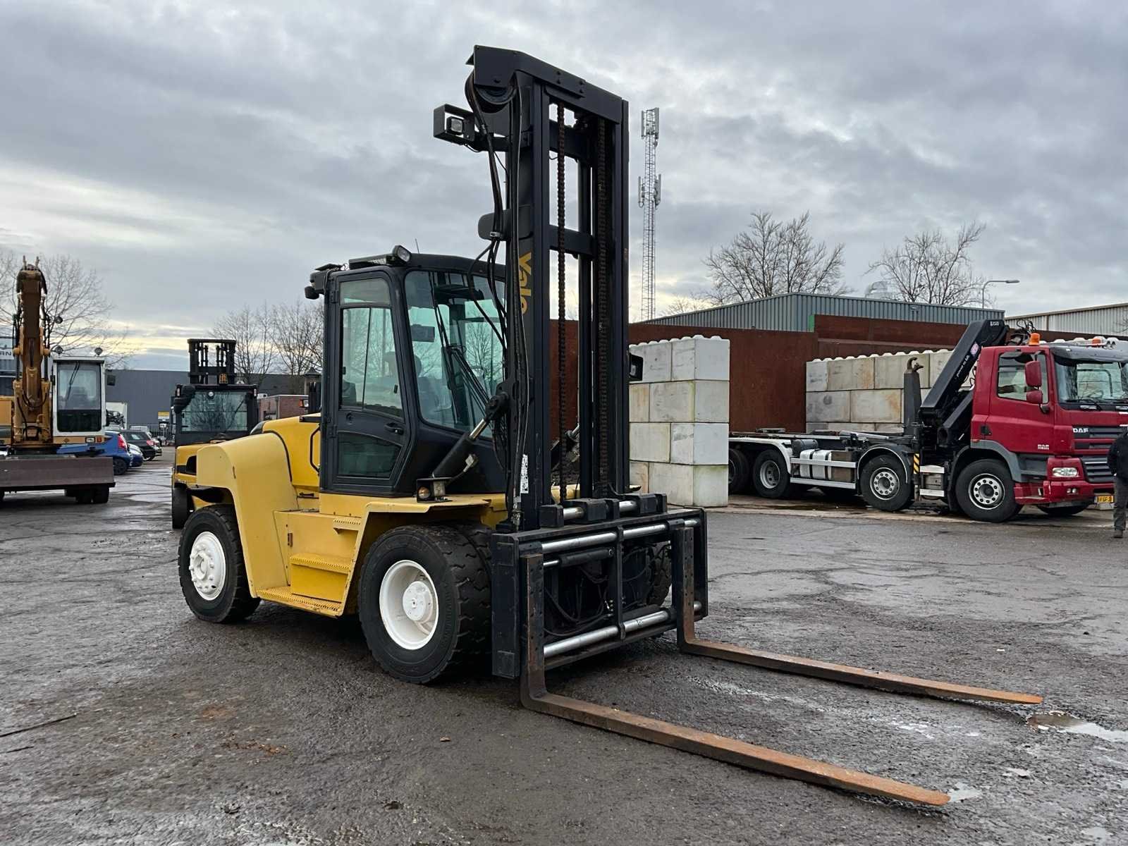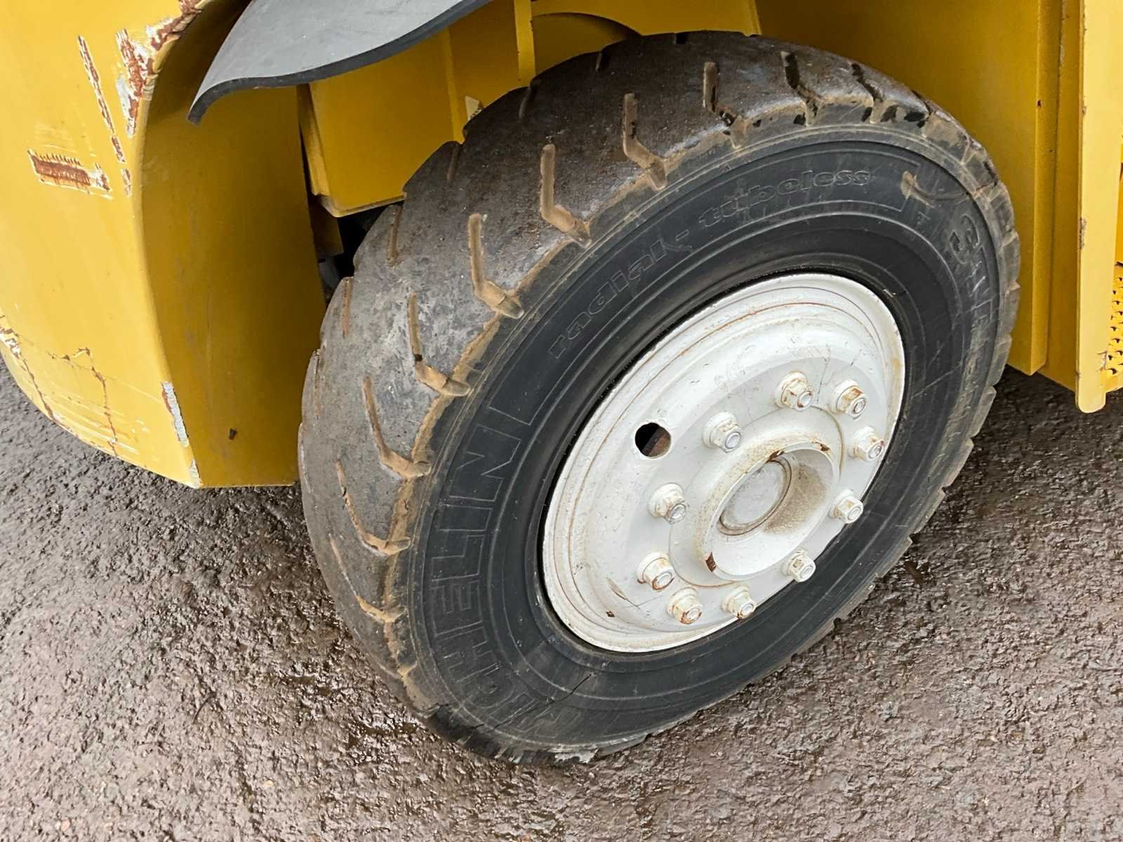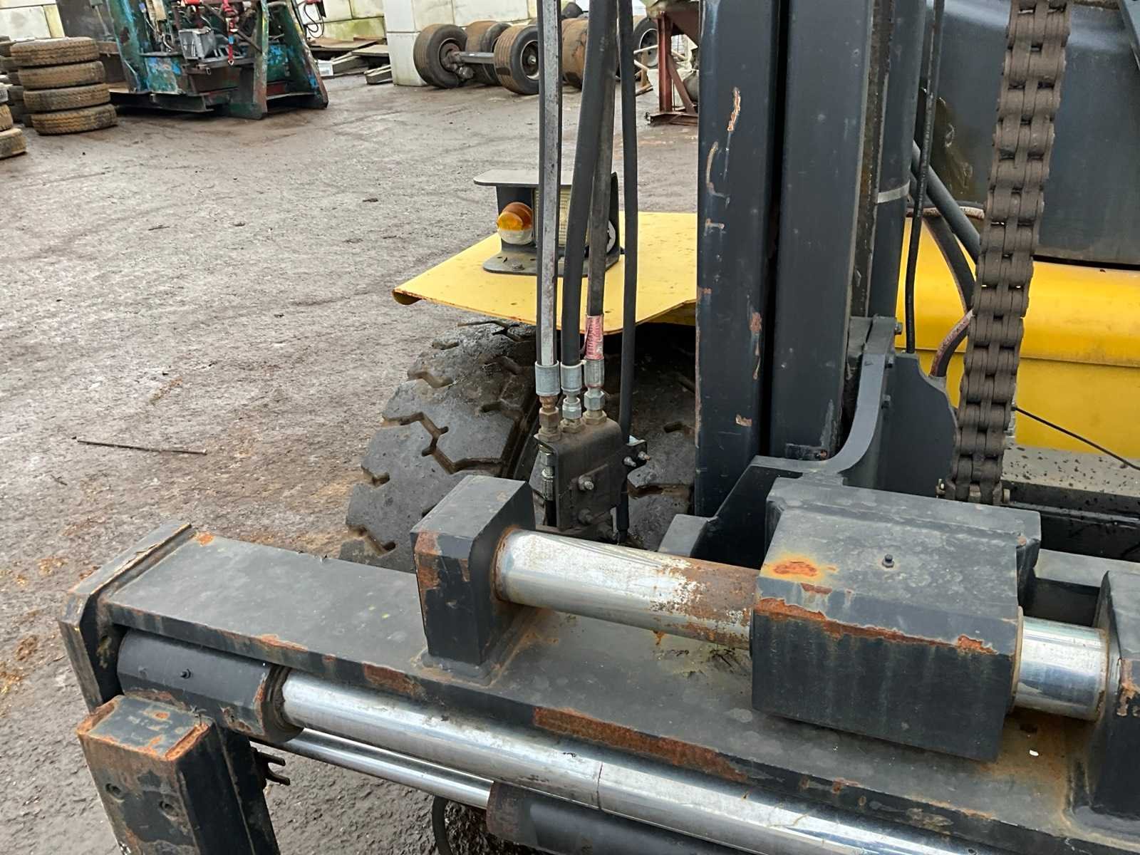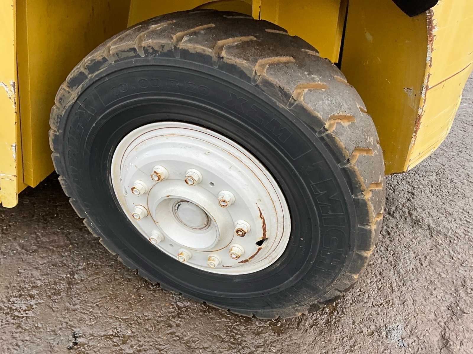 Achteruit rij camera, kachel, 1x cilinder vorkenbord los Merk: Yale Type: GEP80DB V4155 Bouwjaar: 2011 Serienummer: D876E01698J Brandstof: Diesel Mast: Duplex Soort band: Luchtbanden Aantal wielen: 4 Afgelezen urenstand: 17847 Side-shift: true Hydraulisch verstelbare lepels: true Duplex mast: true Eigen gewicht: 13750kg Hefvermogen: 8000kg Lepellengte: 2350mm Hefhoogte: 5400mm Totale afmeting L: 7000mm Totale afmeting Breedte: 2400mm Totale afmeting Hoogte: 4150mm