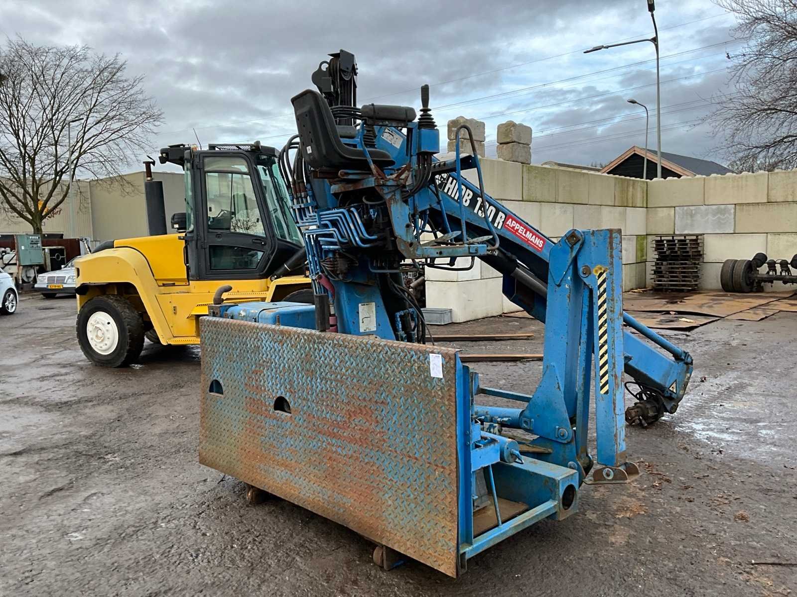 Max bereik 5.0m met capaciteit van 2620kg, hydraulische rotator, 2x hydraulische steunpoot, rails breedte 1200mm, Hatz 2L41C motorblok, Merk: Hiab Model: 130R F-1 Lengte: 4000mm Breedte: 2500mm Hoogte: 2500mm