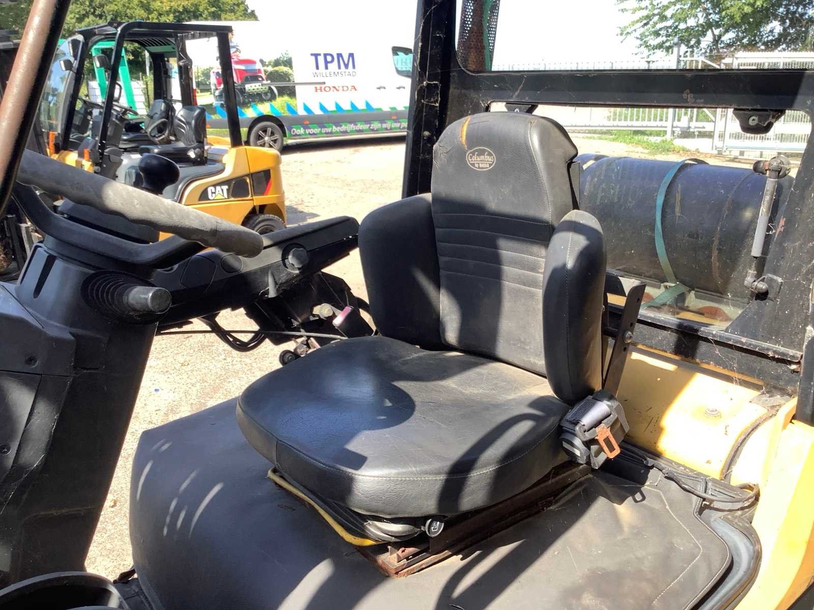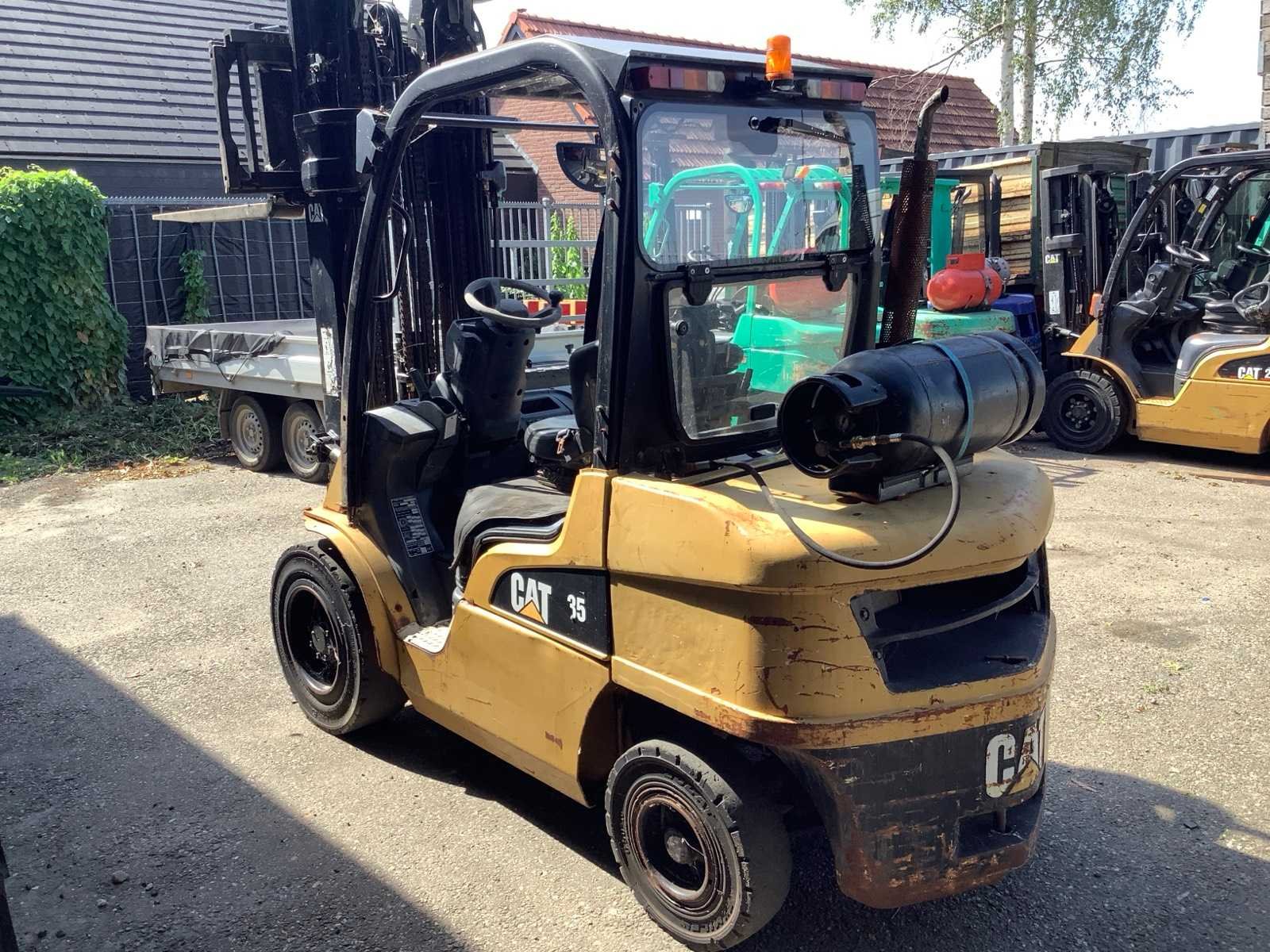 Start rijd voor en achteruit voert alle functies uit zonder gasfles Merk: Cathapilar Type: GP35n Bouwjaar: 2009 Serienummer: 50408 Brandstof: LPG Mast: Triple Soort band: Volrubber banden Aantal wielen: 4 Afgelezen urenstand: 9783 Free-lift: true Side-shift: true Triple mast: true Eigen gewicht: 5000kg Hefvermogen: 3500kg Lepellengte: 1300mm Max. hefhoogte: 5580mm Hefhoogte: 5580mm Vol rubber banden: true Minimale doorrijhoogte: 2600mm Totale afmeting Hoogte: 2600mm