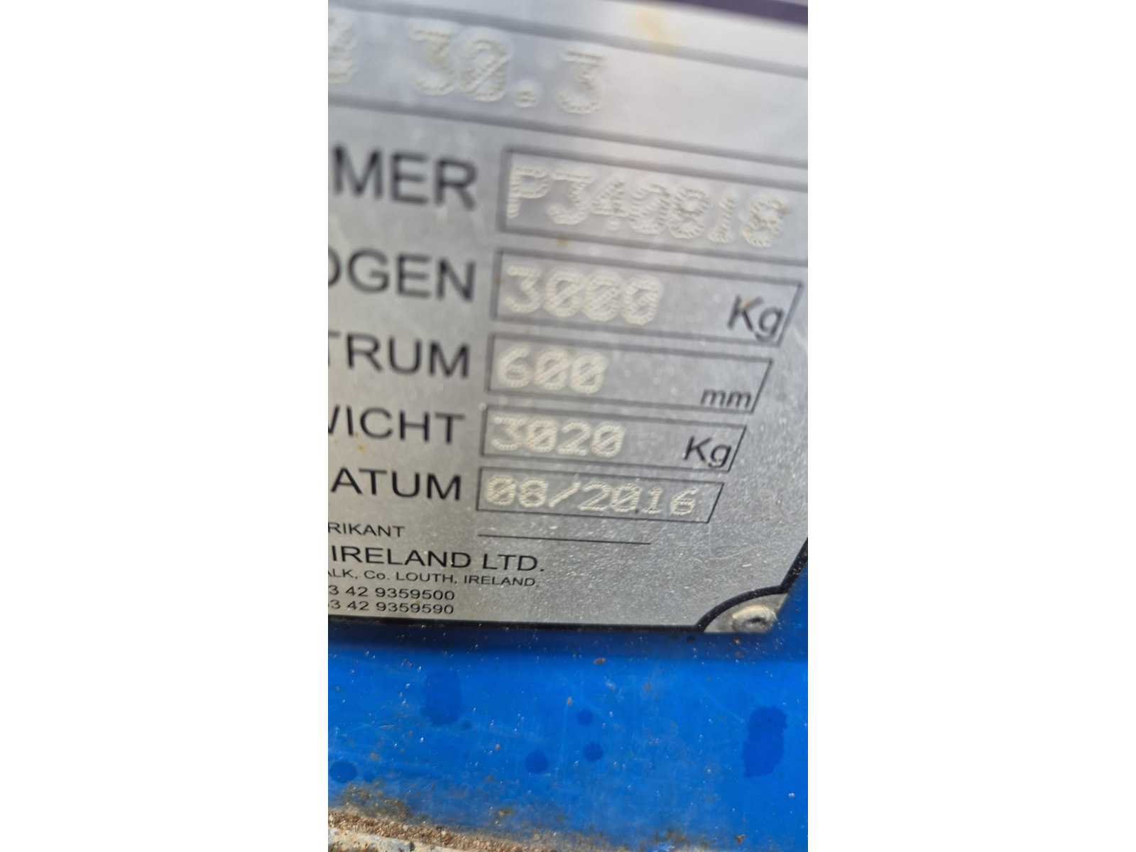 Met vork versteller en stempels Merk: moffett Bouwjaar: 2016 Serienummer: p340916 Diesel: true Aantal wielen: 3 Hefvermogen: 3000kg Hefhoogte: 3800mm Side-shift: true Vol rubber banden: true Afgelezen urenstand: 3300 Eigen gewicht: 3020kg