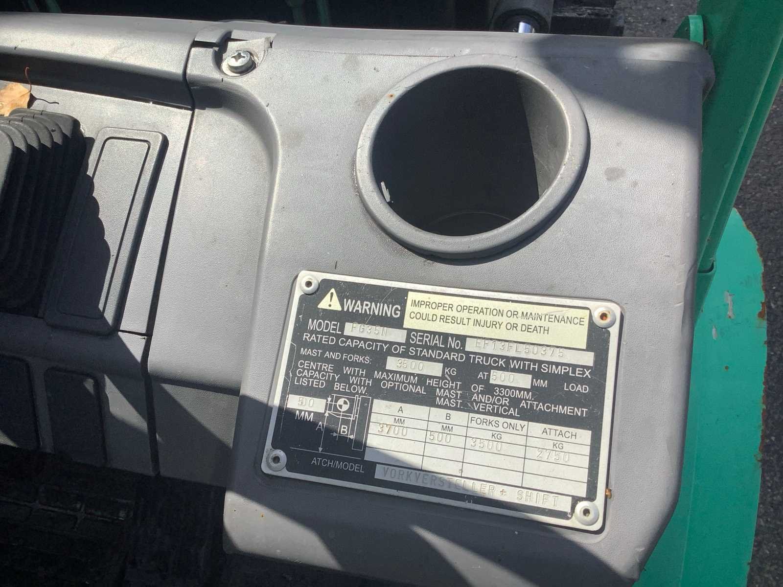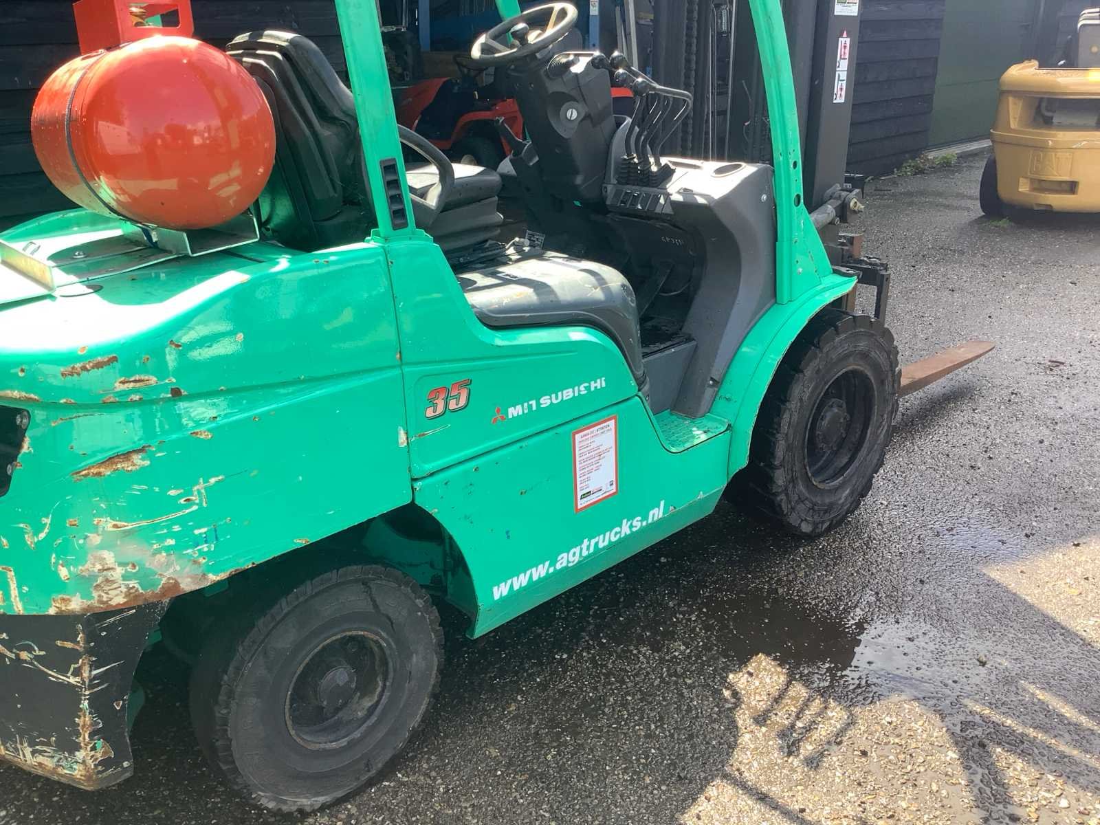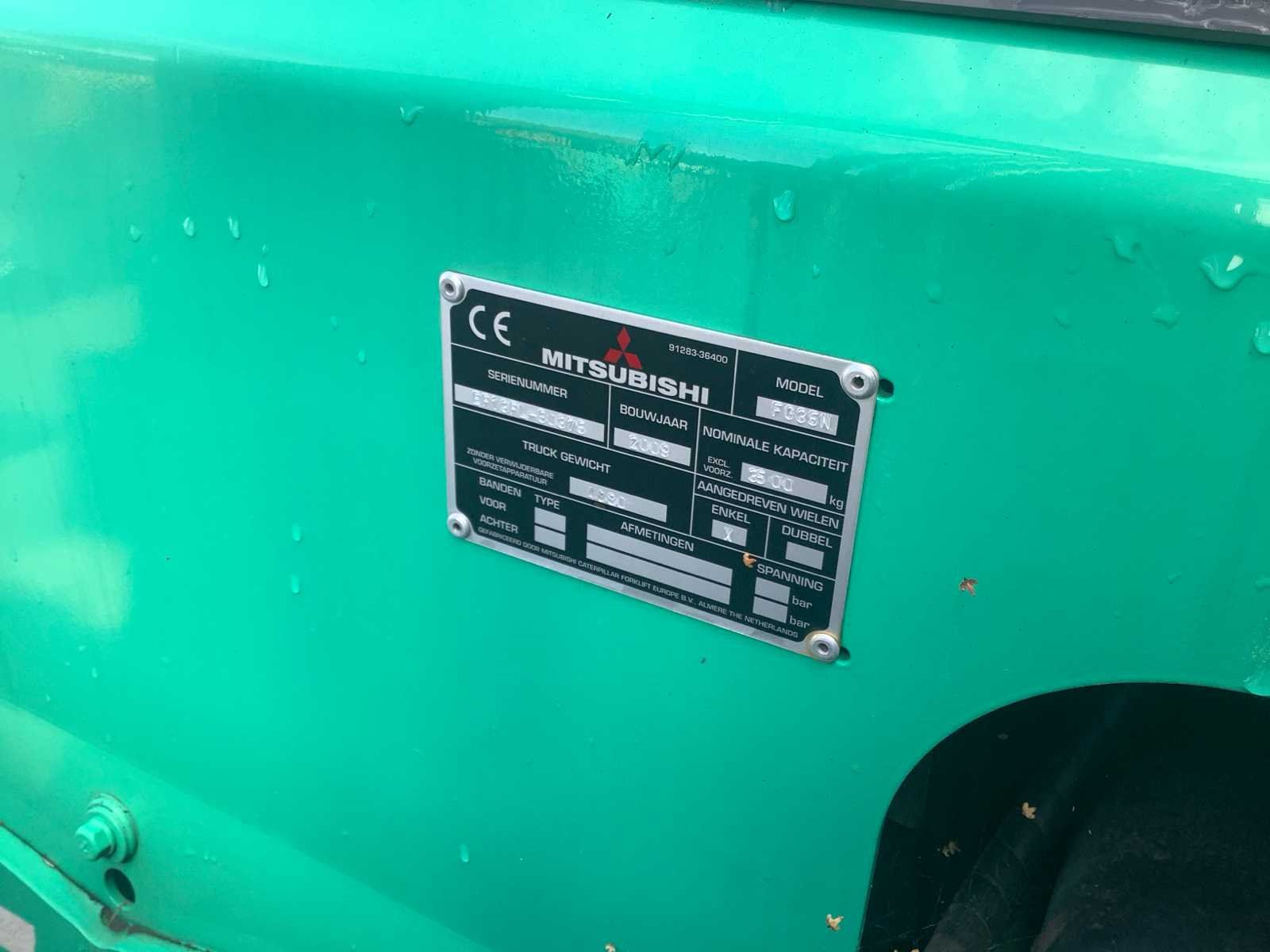 Start rijd voor en achteruit heft heeft weinig kracht Merk: Mitsubitsi Type: FG35n Bouwjaar: 2009 Serienummer: 50375 Brandstof: LPG Mast: Duplex Soort band: Volrubber banden Aantal wielen: 4 Duplex mast: true Eigen gewicht: 4880kg Hefvermogen: 3500kg Lepellengte: 1300mm Totale afmeting L: 4000mm Totale afmeting Breedte: 1300mm Totale afmeting Hoogte: 2600mm LPG: true