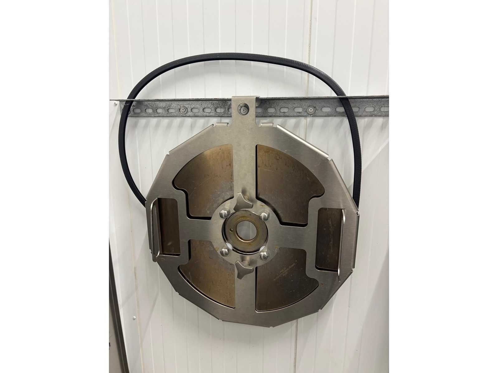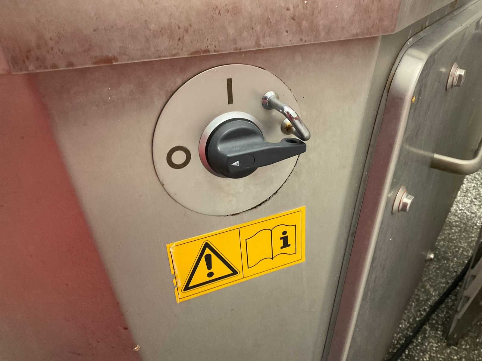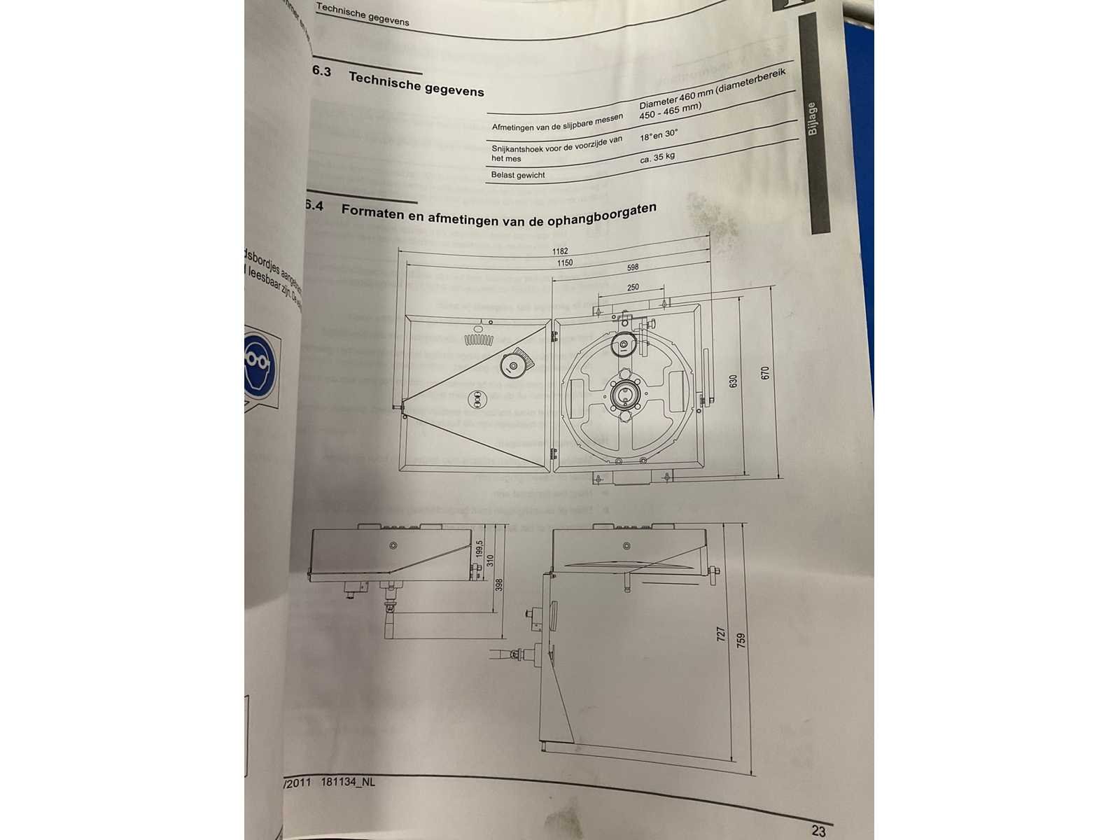 Voltage: 380V, Vermogen: 2,8kW, Afmeting van de slijpbare messen: Diameter 460mm (Bereik: 450-465mm), Snijkantshoek voor de voorzijde van het mes: 18° en 30°, Belast gewicht: 35kg, Maximale inleglengte: 600 mm, Maximale productdoorsnede: 280 x 160 mm, Snijdikte: 0,5 – 25 mm. Inclusief messenslijp kast. Merk: Treif Type: K207 Divider startup Bouwjaar: 2019 Serienummer: 750001.244567.140961 Aansluiting: 400V Eigen gewicht: 560kg Totale afmeting L: 2400mm Totale afmeting Breedte: 900mm Totale afmeting Hoogte: 2050mm