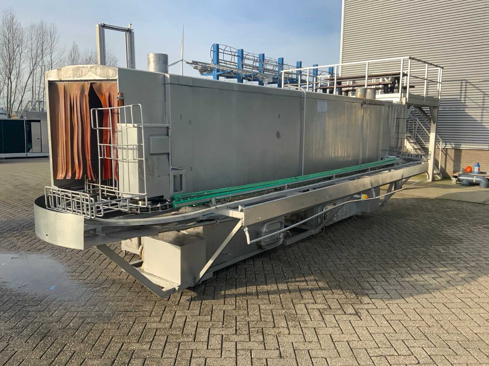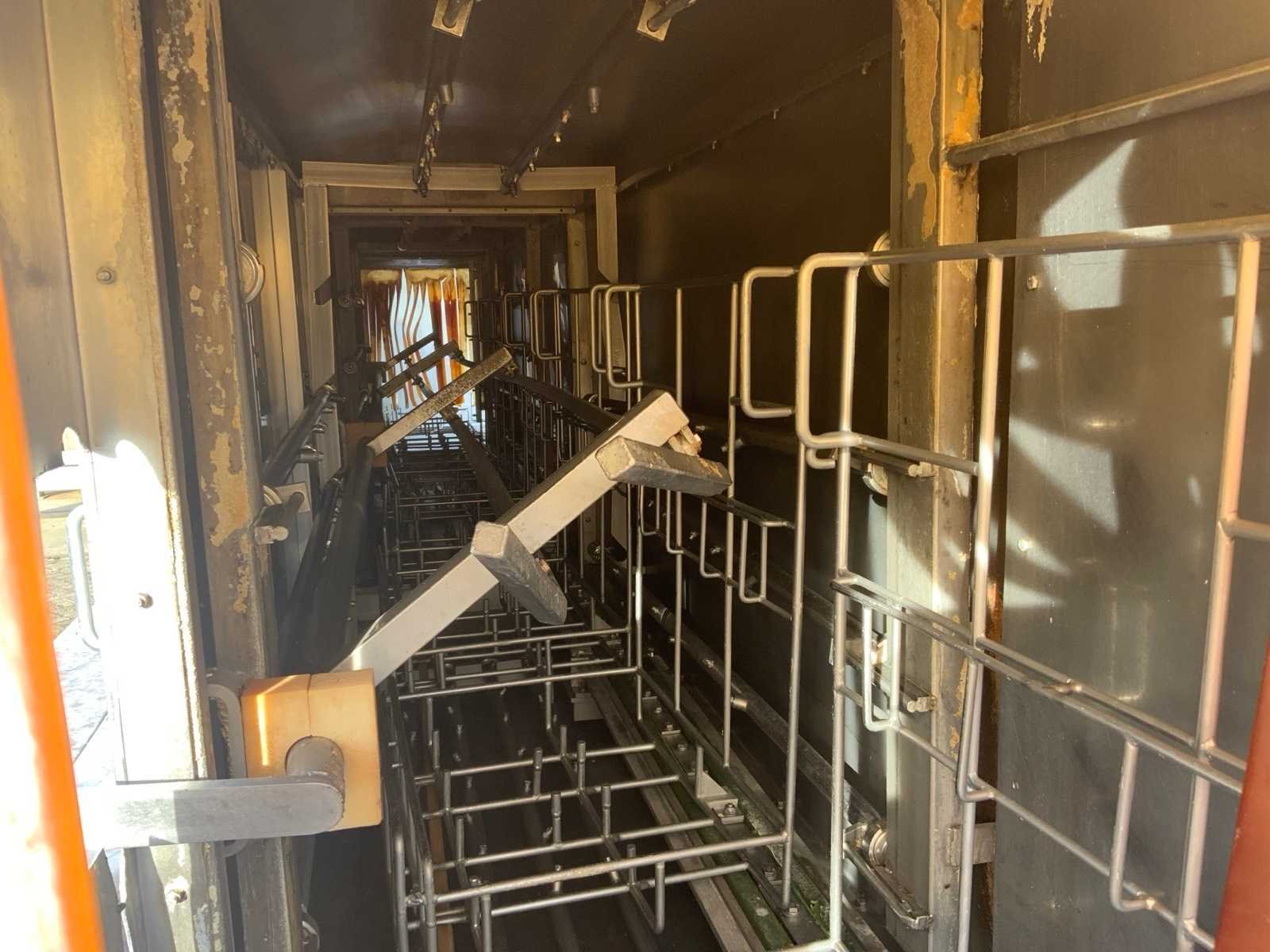 Inlaat krat afmetingen: 400 x 600mm. Bocht en panelen gedemonteerd voor transport. Transport afmetingen: 7850 x 2050 x 2400mm. Merk: Numafa Bouwjaar: 1992 Totale afmeting L: 7850mm Totale afmeting Breedte: 2650mm Totale afmeting Hoogte: 2400mm