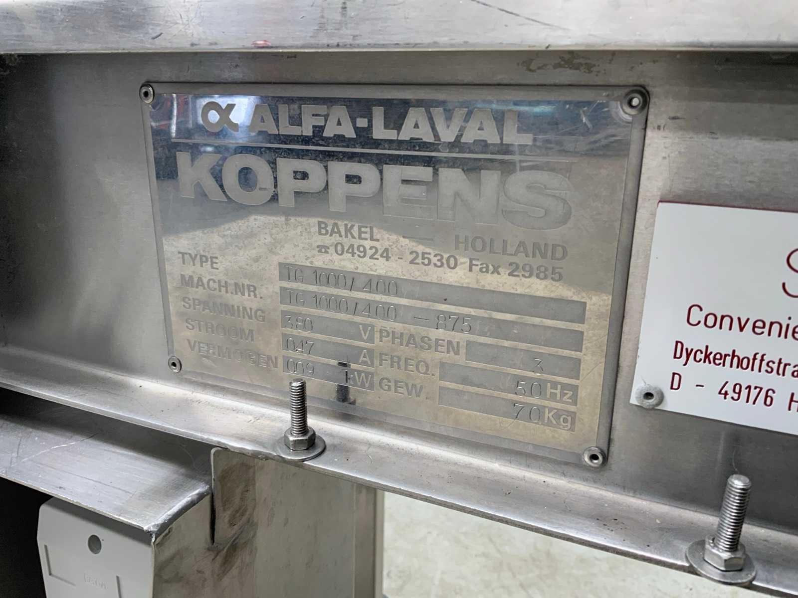 Alfa-laval koppens tg1000 transportband