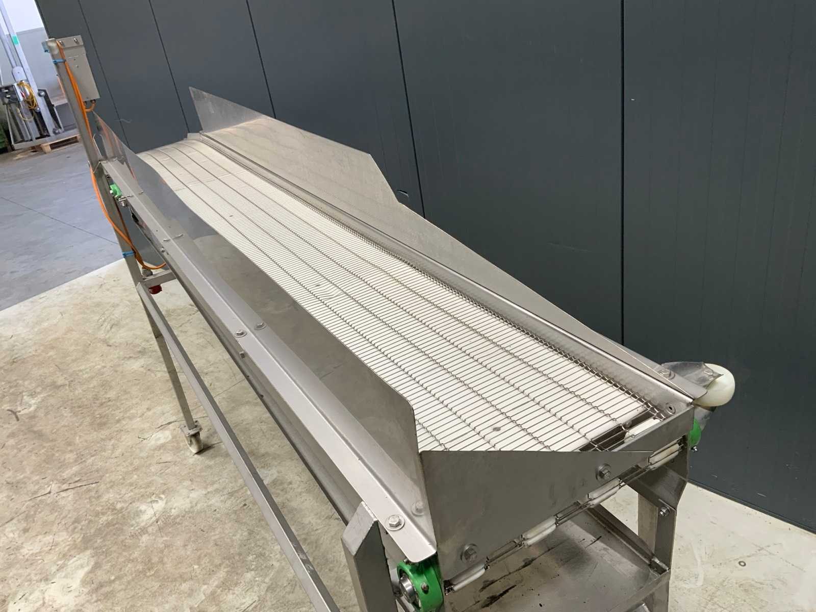 In hoogte verstelbaar. Verrijdbaar. Band afm. l: 3000mm Band afm. b: 400mm Totale afmeting L: 3250mm Totale afmeting Breedte: 550mm Totale afmeting Hoogte: 2000mm