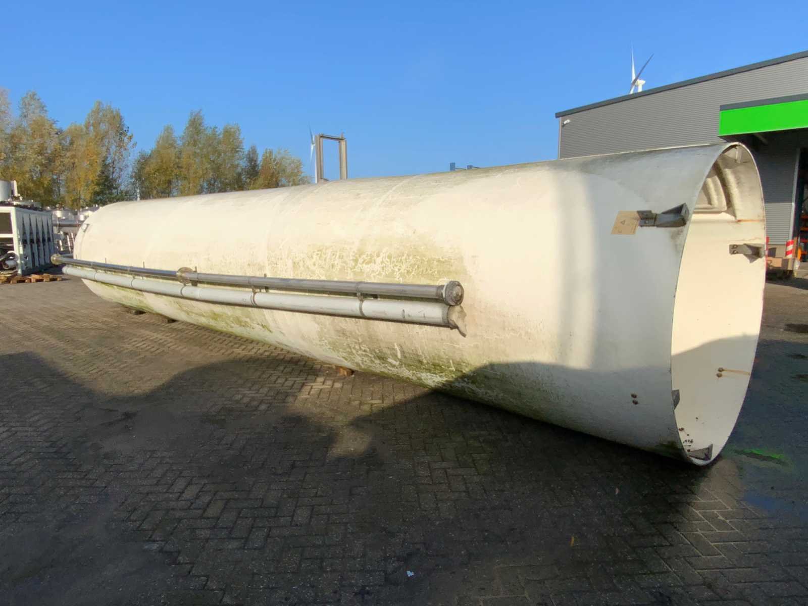 Zout Silo. Inhoud: ca 30.000 liter. Tank hoogte: 12 meter. Tank diameter: 223cm. Met rvs tank en doseerschroef. Totale afmeting L: 13000mm Totale afmeting Breedte: 2450mm Totale afmeting Hoogte: 2230mm