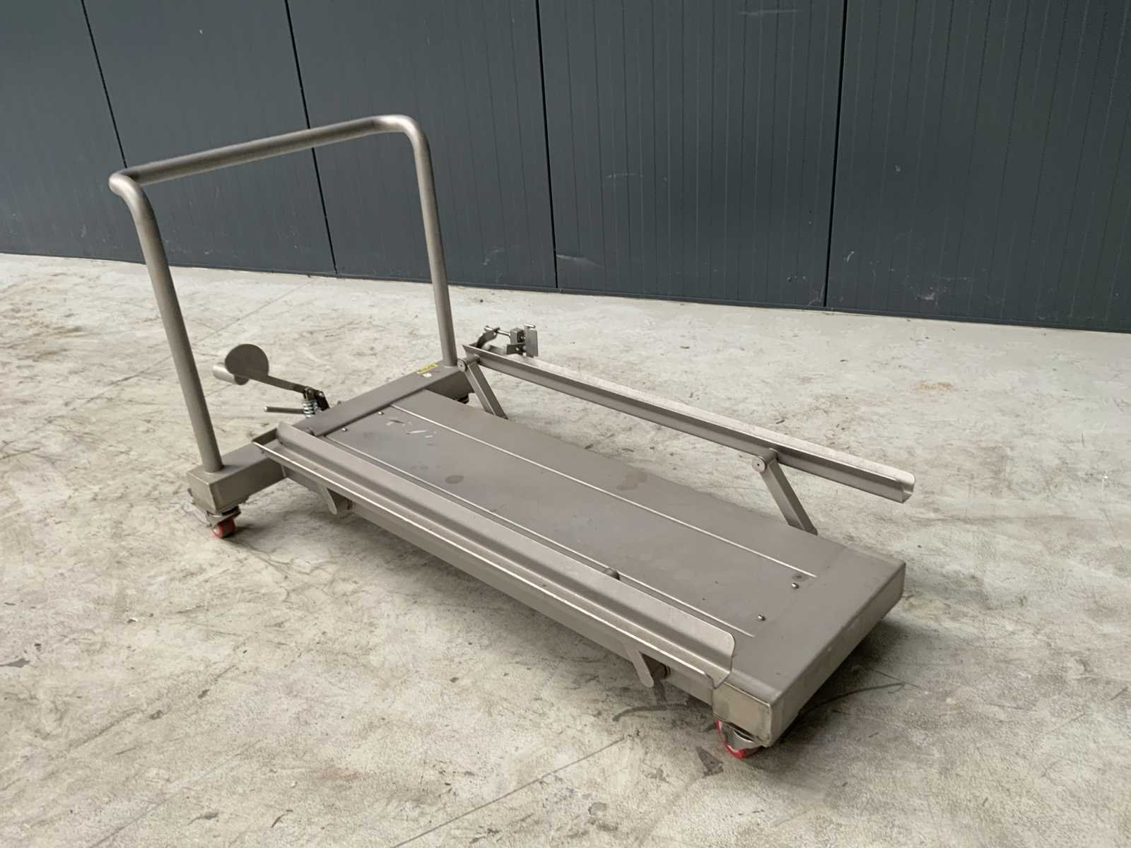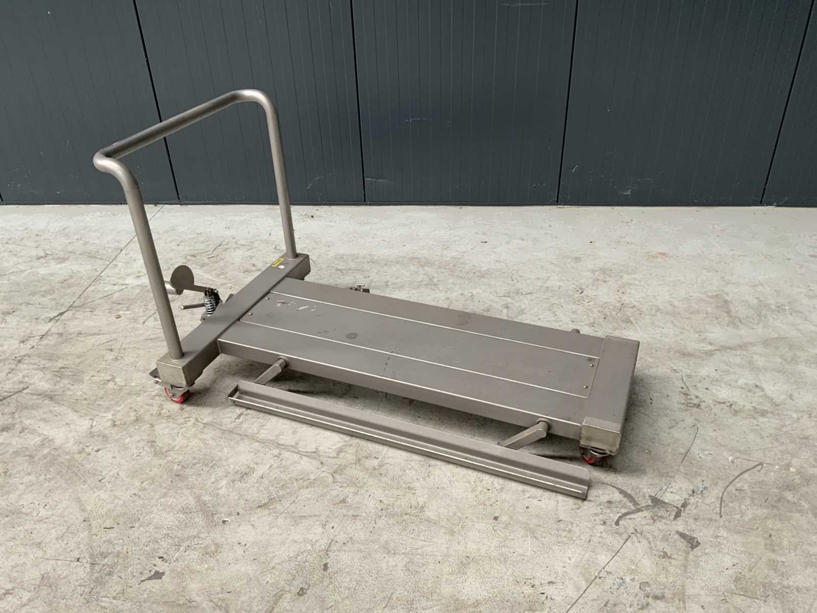 Rails word hydraulisch opgepompt met palletwagen. Totale afmeting L: 1550mm Totale afmeting Breedte: 800mm Totale afmeting Hoogte: 850mm