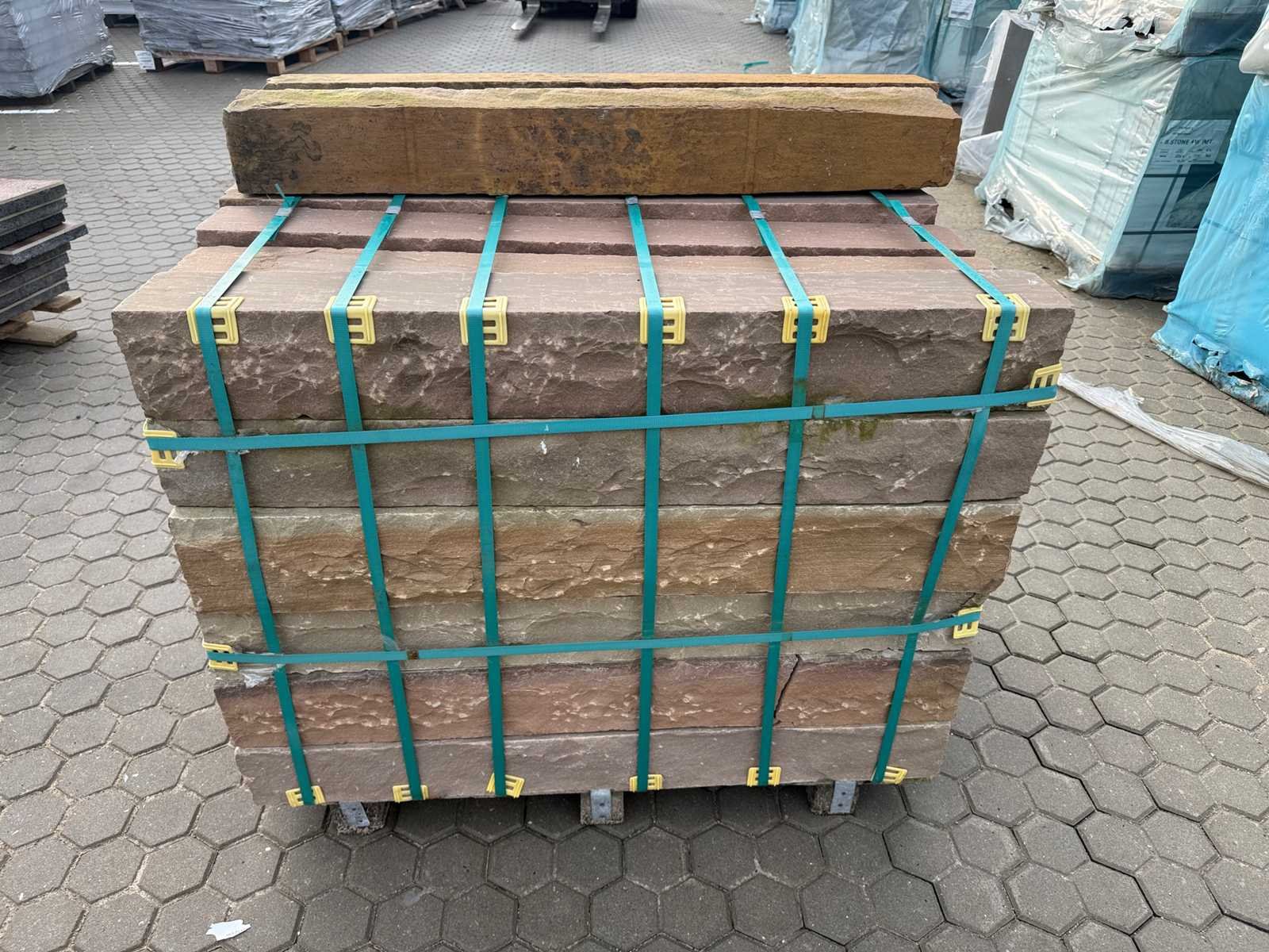 Afmetingen circa: 12 cm x 12 cm x 100 cm. Natuursteen Kandla multicolor palissade/muurblok. Aantal pallets: 1. --- U kunt deze kavel afhalen in Hulst op 15 april. Daarvoor moet u uiterlijk 6 april uw factuur van Troostwijk betaald hebben. Bij betaling ná deze datum blijft uw kavel bij de verkoper staan en is afhalen in Hulst enkel mogelijk op afspraak. --- U kunt deze kavel ook laten bezorgen. De kosten bedragen voor dit kavel €110,00 exclusief BTW. Wilt u meerdere kavels laten bezorgen? Vanaf het tweede tot en met de vijfde kavel betaalt u €75,00 euro ex BTW per kavel. Voor 6 kavels of meer betaalt u een vast bedrag van €450,00 ex BTW. Levering vindt alleen plaats in Nederland. Kosten bezorging op de Waddeneilanden en België op aanvraag. Voor het laten bezorgen van uw kavel(s) dient u zelf uiterlijk 6 april contact op te nemen via e-mail, Veiling@dbtrading.nl . Bezorginformatie: Het losadres moet goed bereikbaar zijn voor een vrachtwagen met trailer waarop een kraan is bevestigd. Deze kraan kan de pallets maximaal 4 meter vanaf de wagen lossen. Hiermee dient u rekening te houden i.v.m. het vrijhouden van de losplaats. De chauffeur heeft geen palletwagen tot zijn beschikking. Kleur: Multicolor Lengte: 12cm Breedte: 12cm Hoogte: 100cm Materiaal: Muurblokken voor de tuin