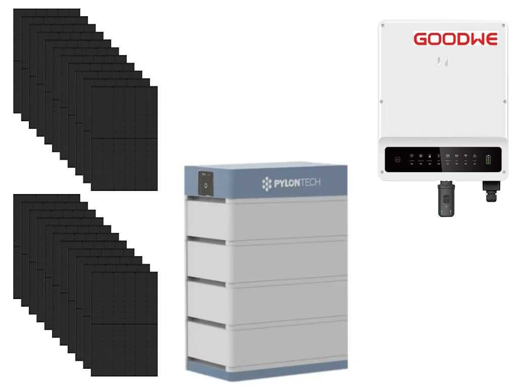 Batterijen: 4x Pylontech FH48074 H1 3,55 kWh BMS: Pylontech FC0500-40S-B management zonnepanelen: 24x Jinko JKM440N-54HL4R-B (440 wp) Full Black omvormer: Goodwe Hybrid Inverter 10K (3 phase) totaal vermogen: 10.560 Wp vermogen: 440 Wp per zonnepaneel conditie: nieuw Merk: Jinko Solar Type: JKM440N-54HL4R-B Max. dc power: 440W Eigen gewicht: 22kg Totale afmeting L: 1762mm Totale afmeting Breedte: 1143mm Totale afmeting Hoogte: 30mm
