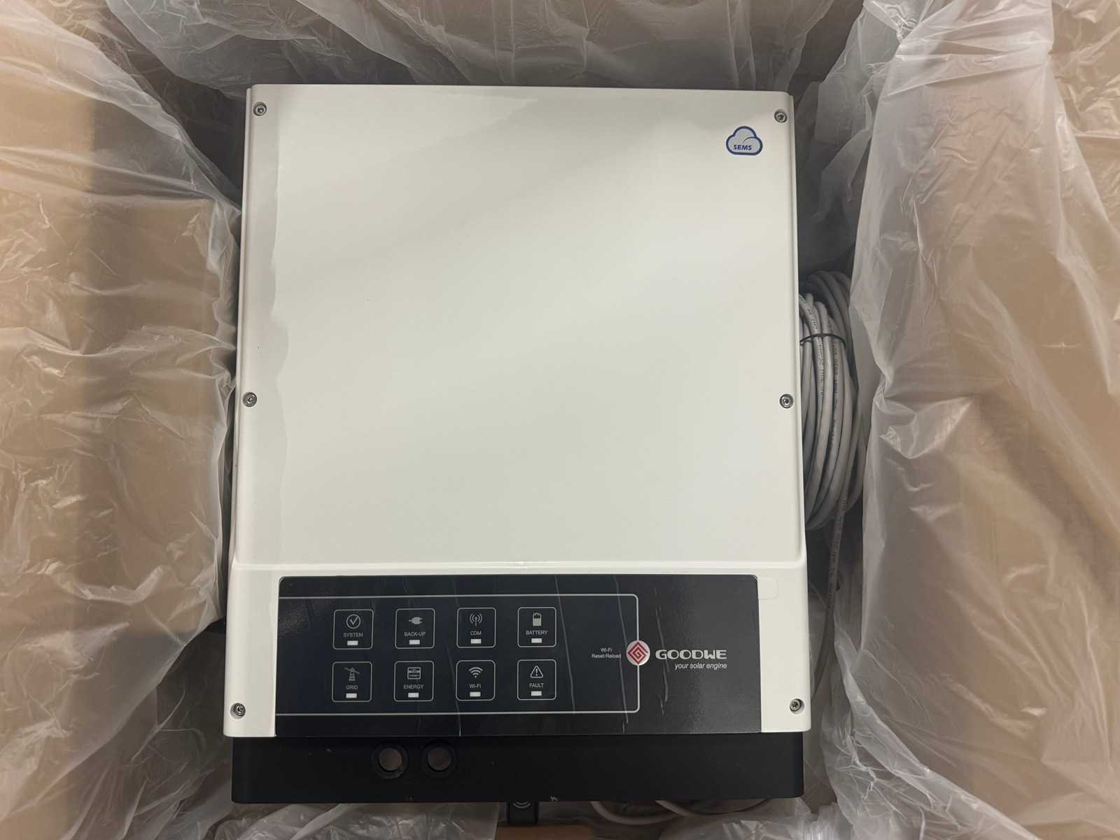 Omvormer: GoodWe 3648D-ES hybride omvormer, incl. meetspoelen en meter. Batterij: 2x Dyness B4850 2.4kWh Lithium accu, inclusief kabelset Conditie: ongebruikt Merk: Goodwe + Dyness