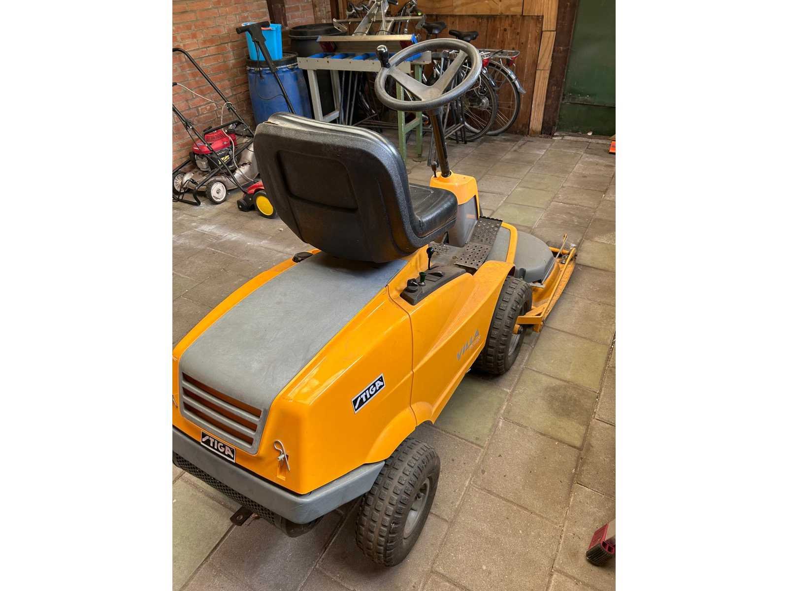Op werking getest start rijd maait Merk: Stiga Type: villa Werkbreedte: 1020mm Zitmaaier: true Benzinemotor: true Brandstof: benzine