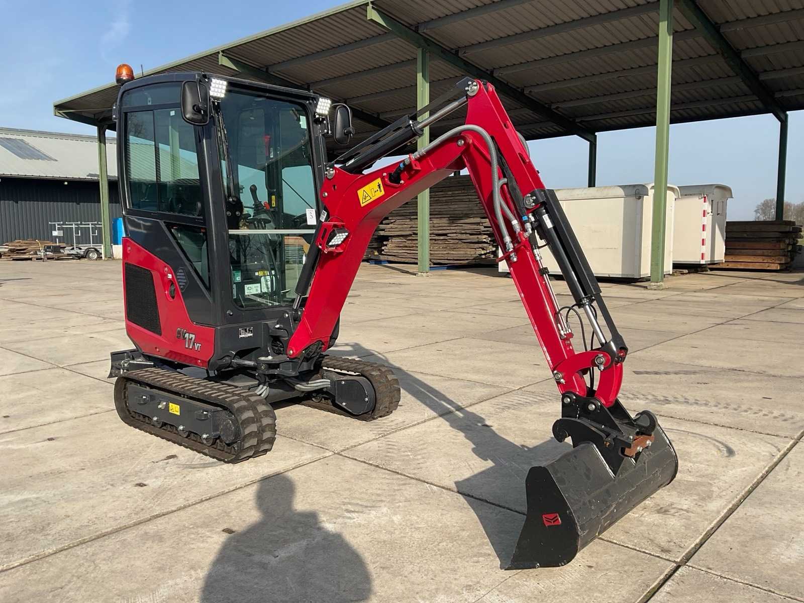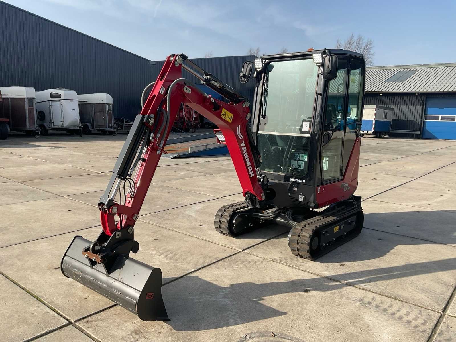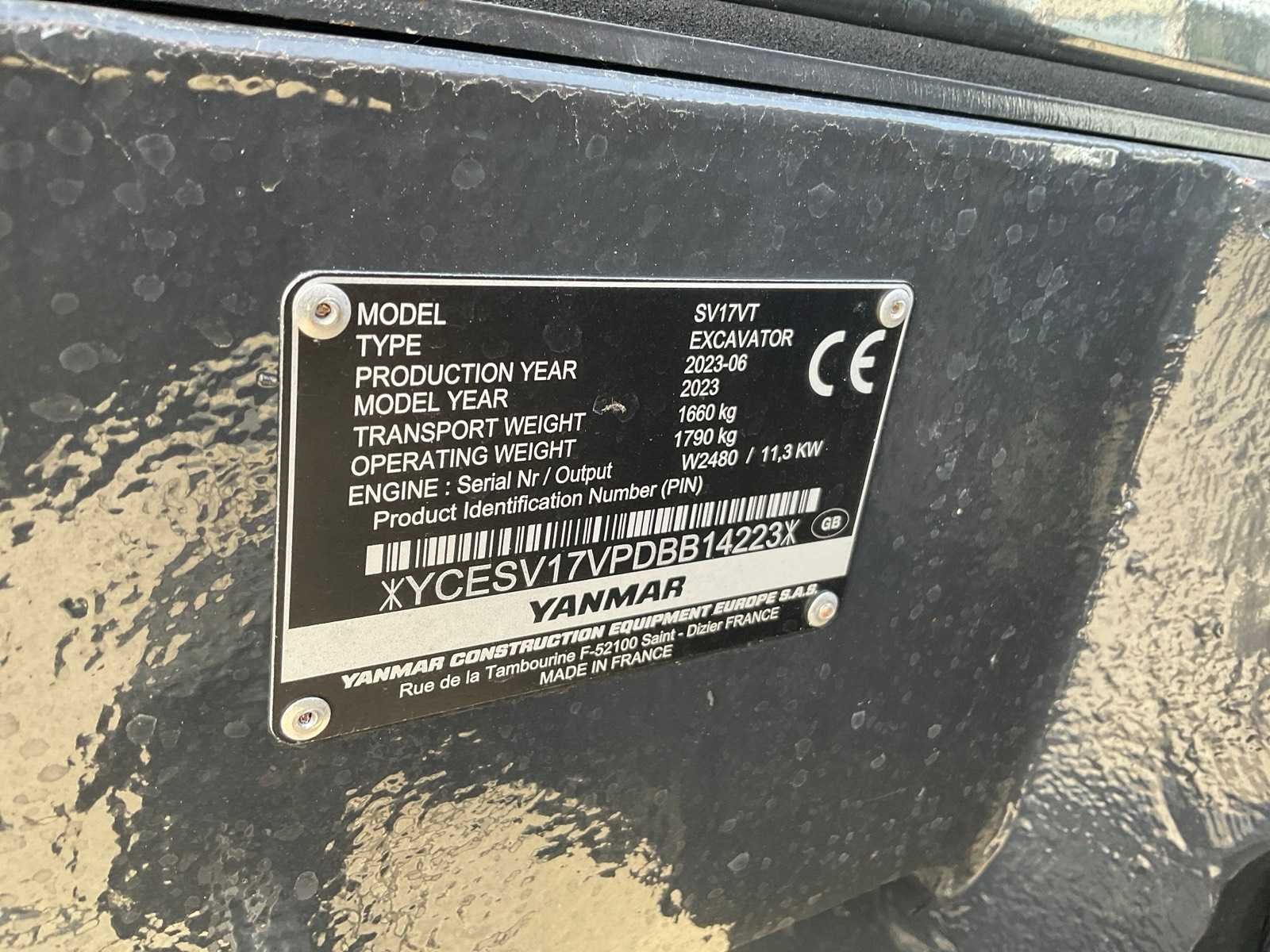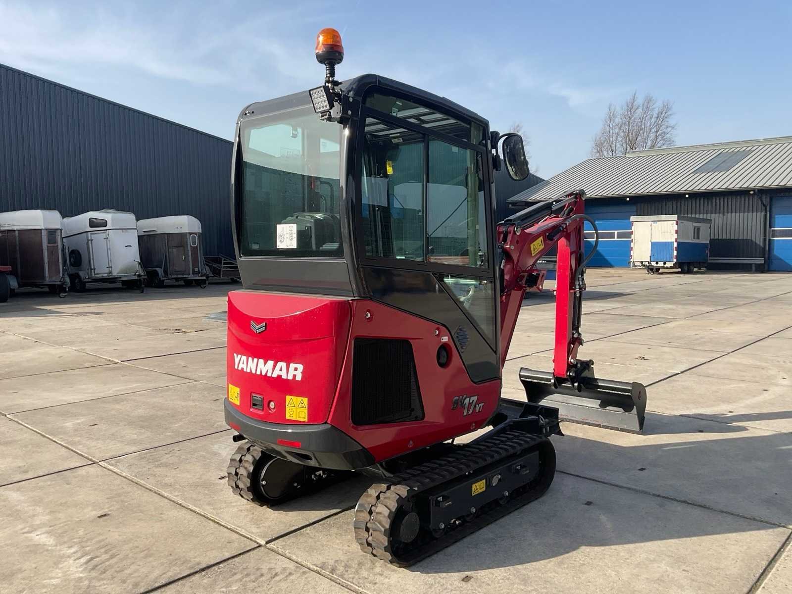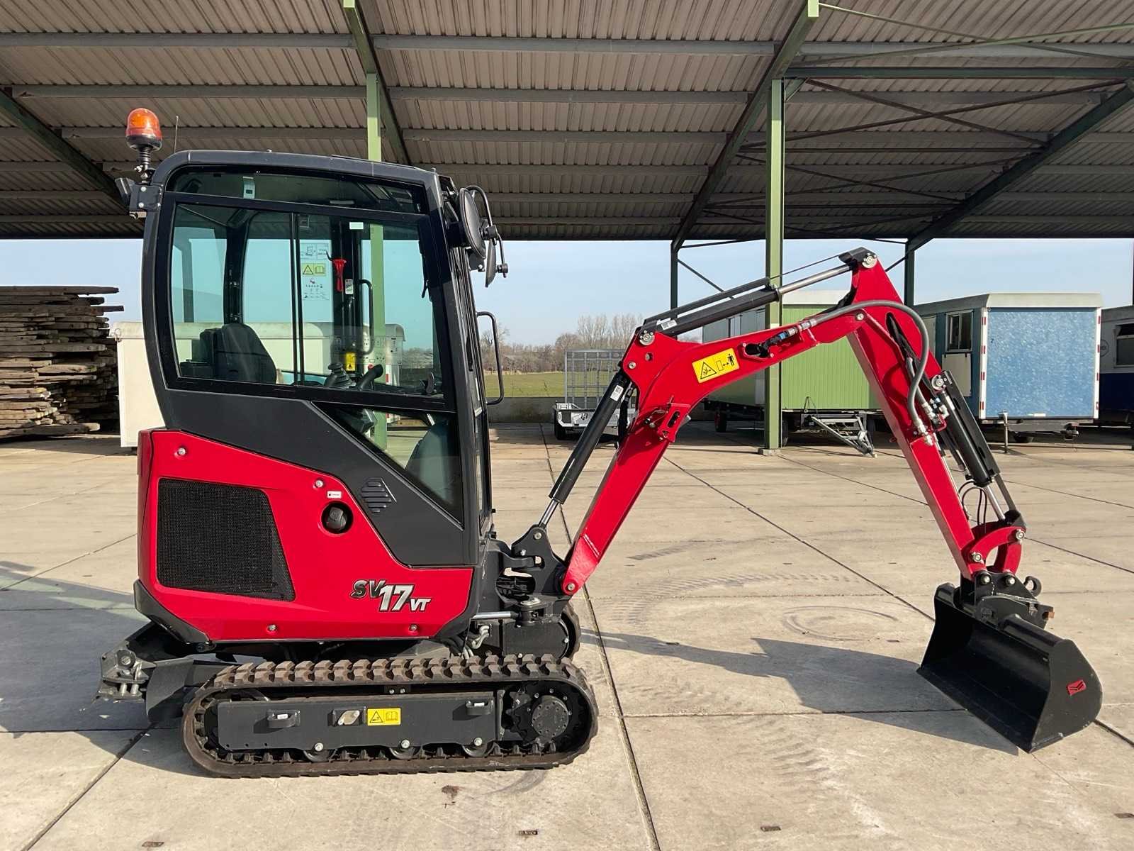 Voorzien van verstekgiek, snelwissel, spoorbreedte verstelbaar Merk: Yanmar Type: SV17VT Bouwjaar: 2023 Serienummer: YCESV17VPDBB14223 Merk motor: Yanmar Motorvermogen (kW): 11.3kW Aantal cilinders: 3 Brandstof: Diesel Bedrijfsgewicht: 1790kg Gieklengte: 3000mm Inclusief graafbak: Yes Graafbak afm. l: 220mm Graafbak afm. b: 970mm Graafbak afm. h: 400mm Rups breedte: 230mm Afgelezen urenstand: 1316 Eigen gewicht: 1660kg Totale afmeting L: 3000mm Totale afmeting Breedte: 1350mm Totale afmeting Hoogte: 2300mm