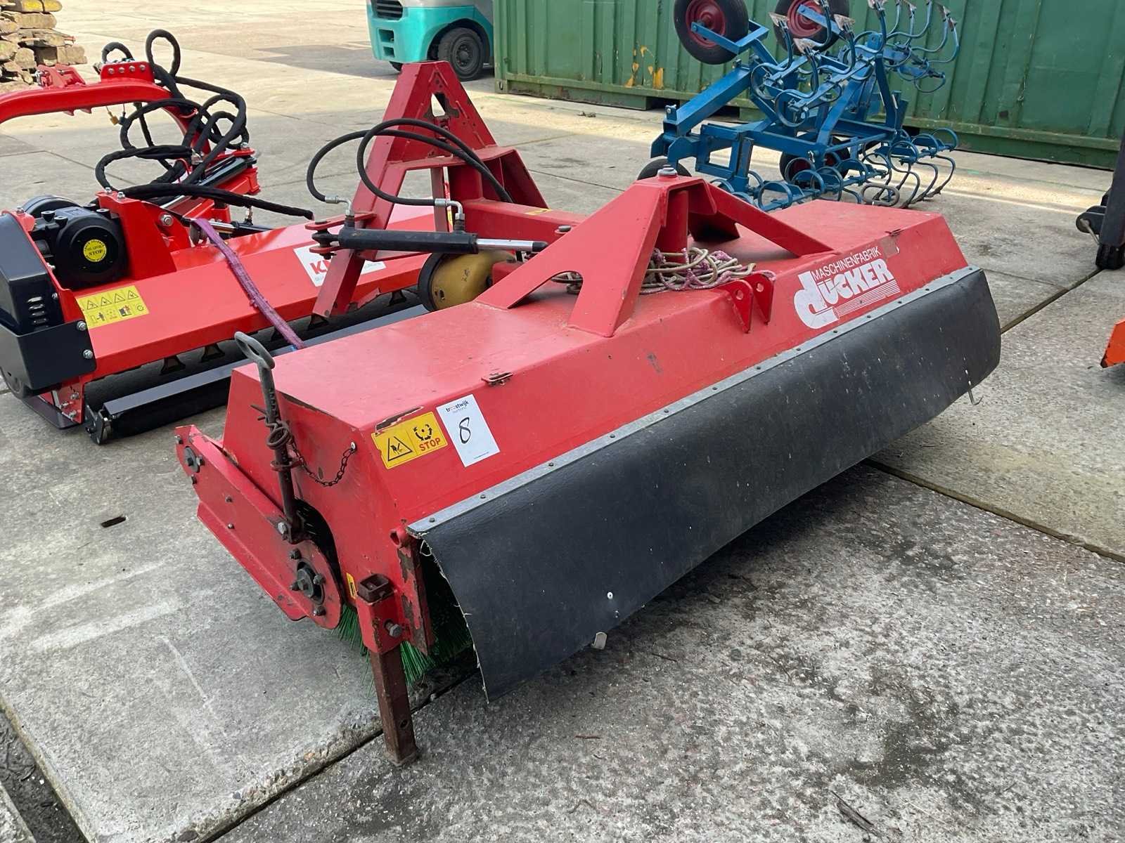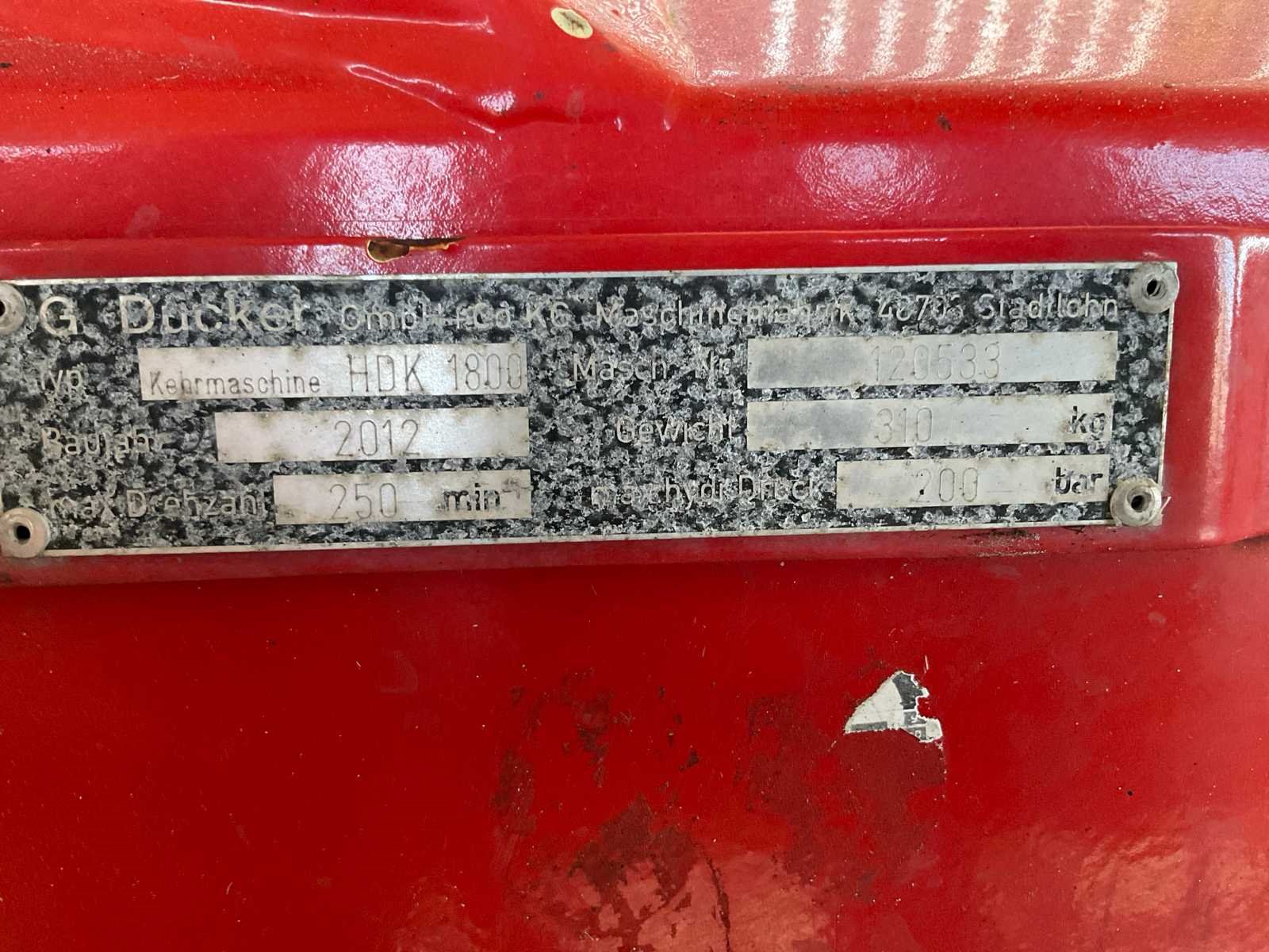 Accord aansluiting, hydraulische hoekverstelling, zwenkwielen, borstel hoogte verstelling Merk: Dücker Type: HDK 1800 Bouwjaar: 2012 Werkbreedte: 1800mm Totale afmeting L: 1300mm Totale afmeting Breedte: 1800mm Totale afmeting Hoogte: 1100mm