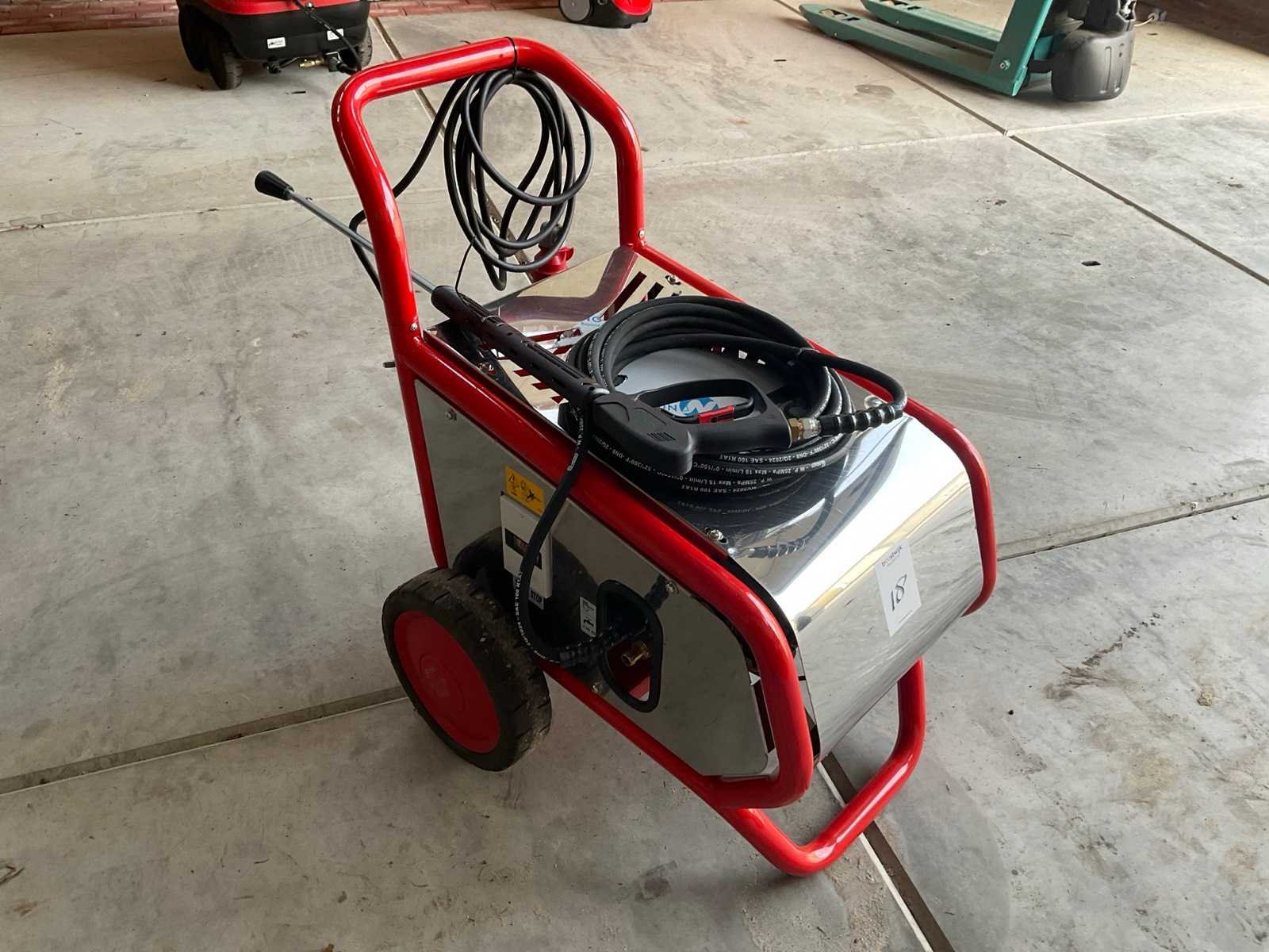 Inclusief slang en lans Merk: Meclean Type: Powerjet-2 200/15 Bouwjaar: 2025 Serienummer: 2025020623 Maximale werkdruk: 200bar Capaciteit.: 900l/hr Mobiel: true Vermogen: 5.5kW Aansluiting: 400V Eigen gewicht: 90kg Totale afmeting L: 1000mm Totale afmeting Breedte: 600mm Totale afmeting Hoogte: 900mm