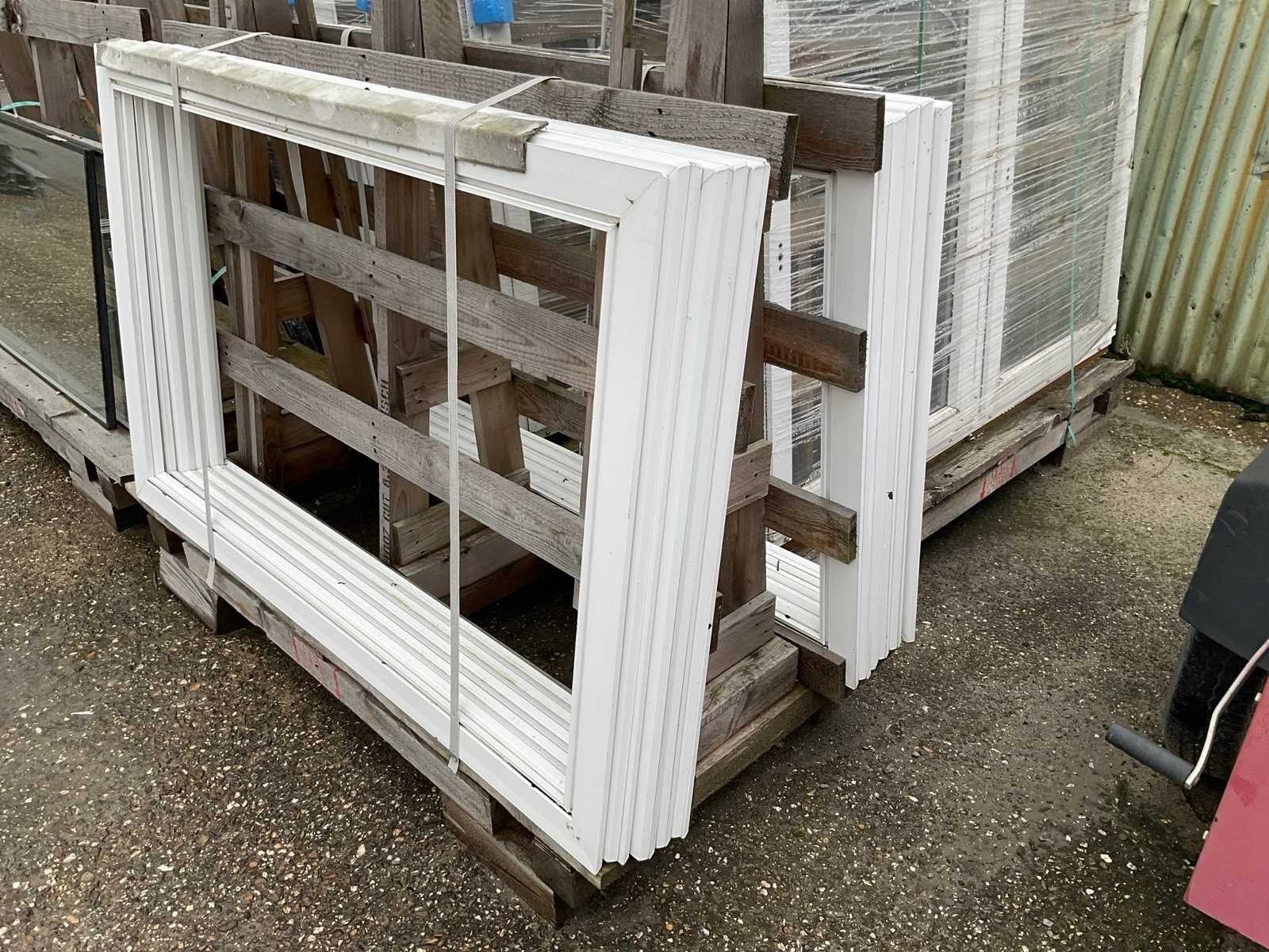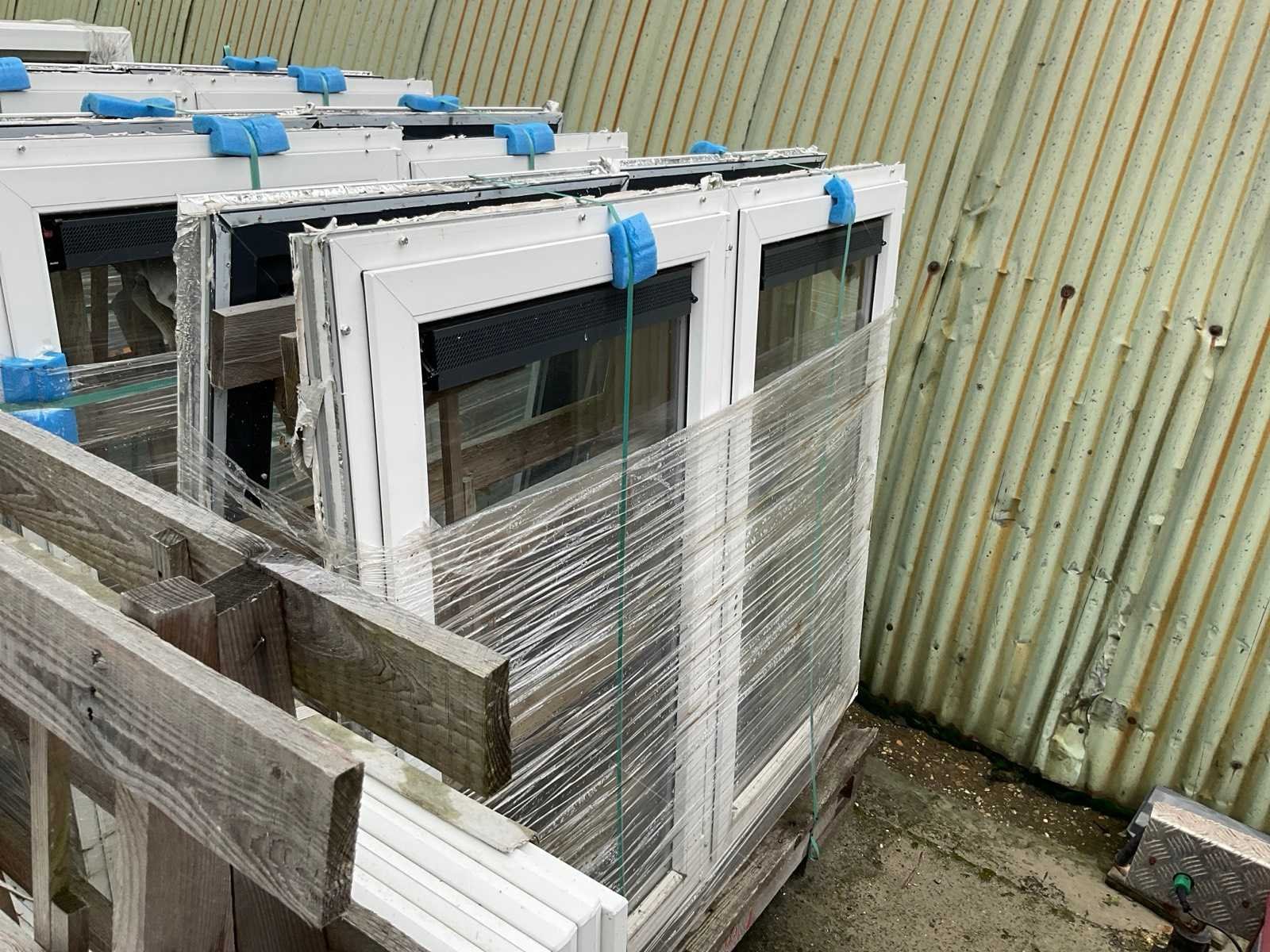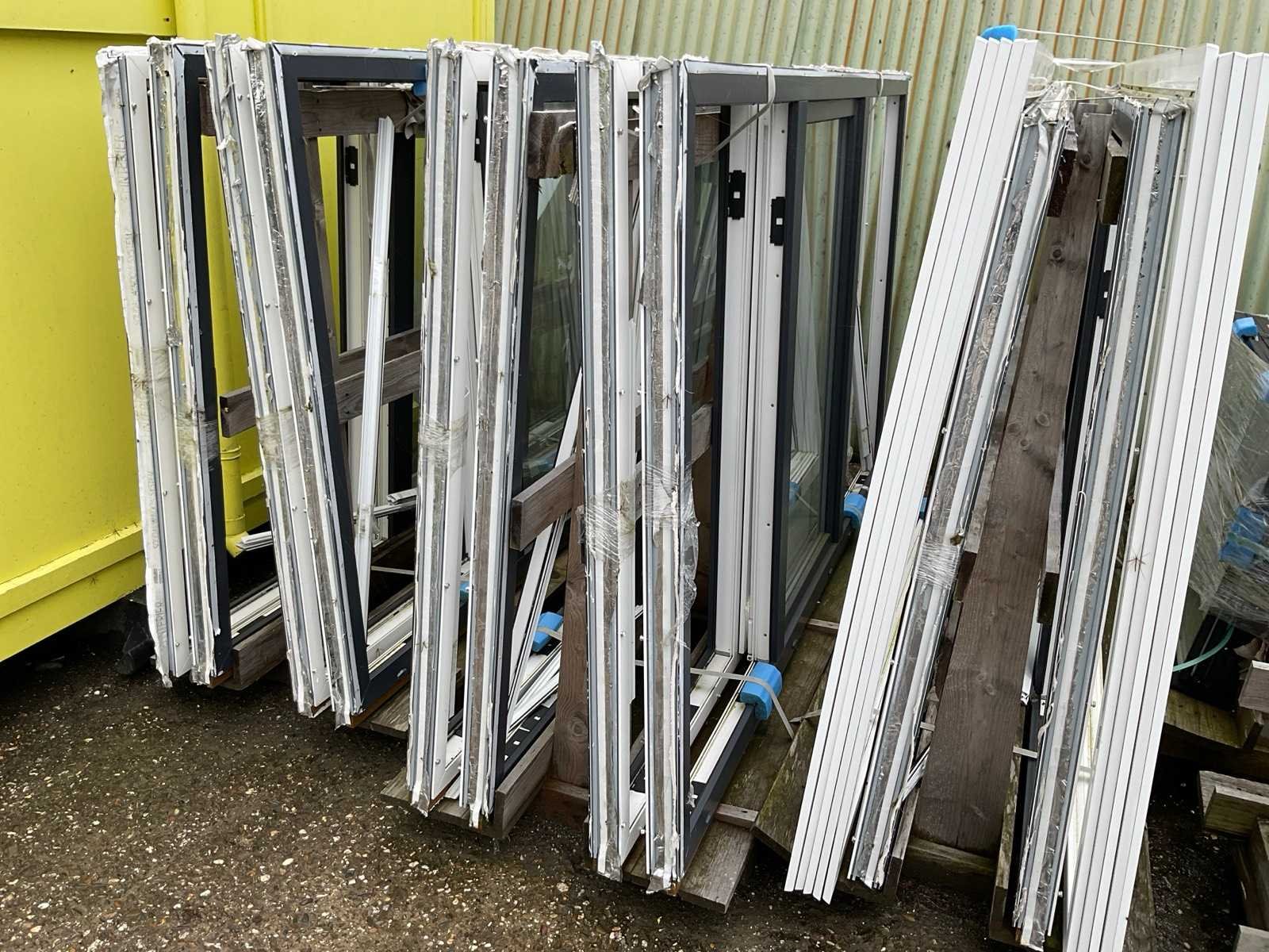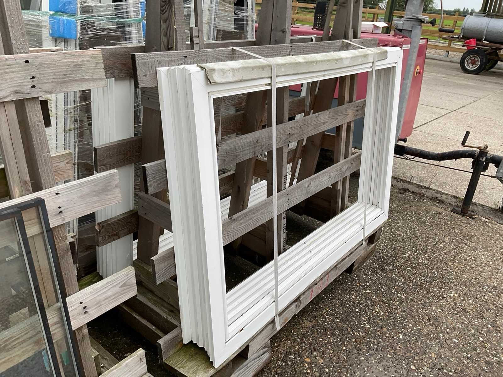 Betreft 9 bokken met kozijnen en glas, antraciet en wit, 2x bok met 8x 2470x1500x70mm met in het midden draaikantel raam, beide zijramen hebben geen glas, 1x bok met 2x 2470x1500x70mm idem als de vorige met 10 witte afdeklijsten, 1x bok met 10x glas voor de vorige kozijnen, 3x bok met 6x 1800x1500x70mm kozijnen voorzien van draairamen met glas, 1x bok met 20 witte afdeklijsten, bok met 2x glas Stomp: true