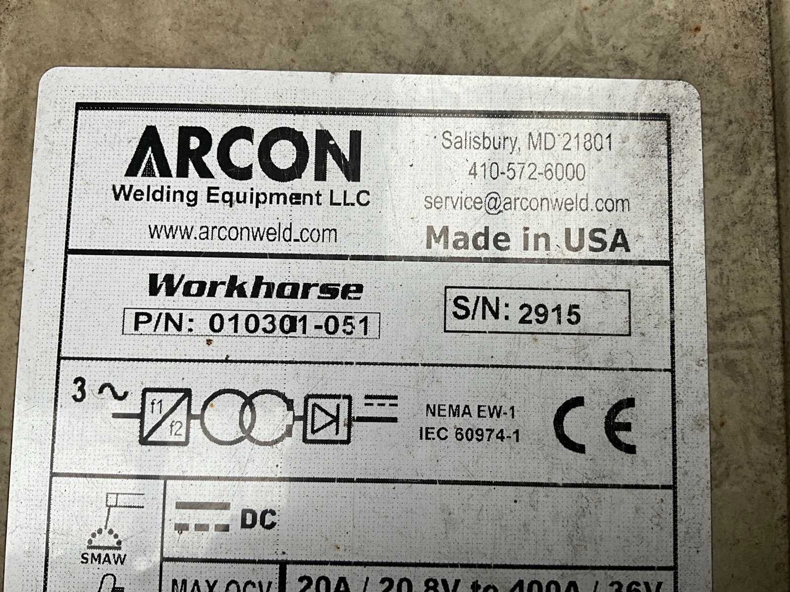 Merk: Workhorse Type: 300S Inschakelduur: 36% Max. lasvermogen: 400A Aansluiting: 400V Afmeting l: 500mm Afmeting b: 280mm Afmeting h: 460mm