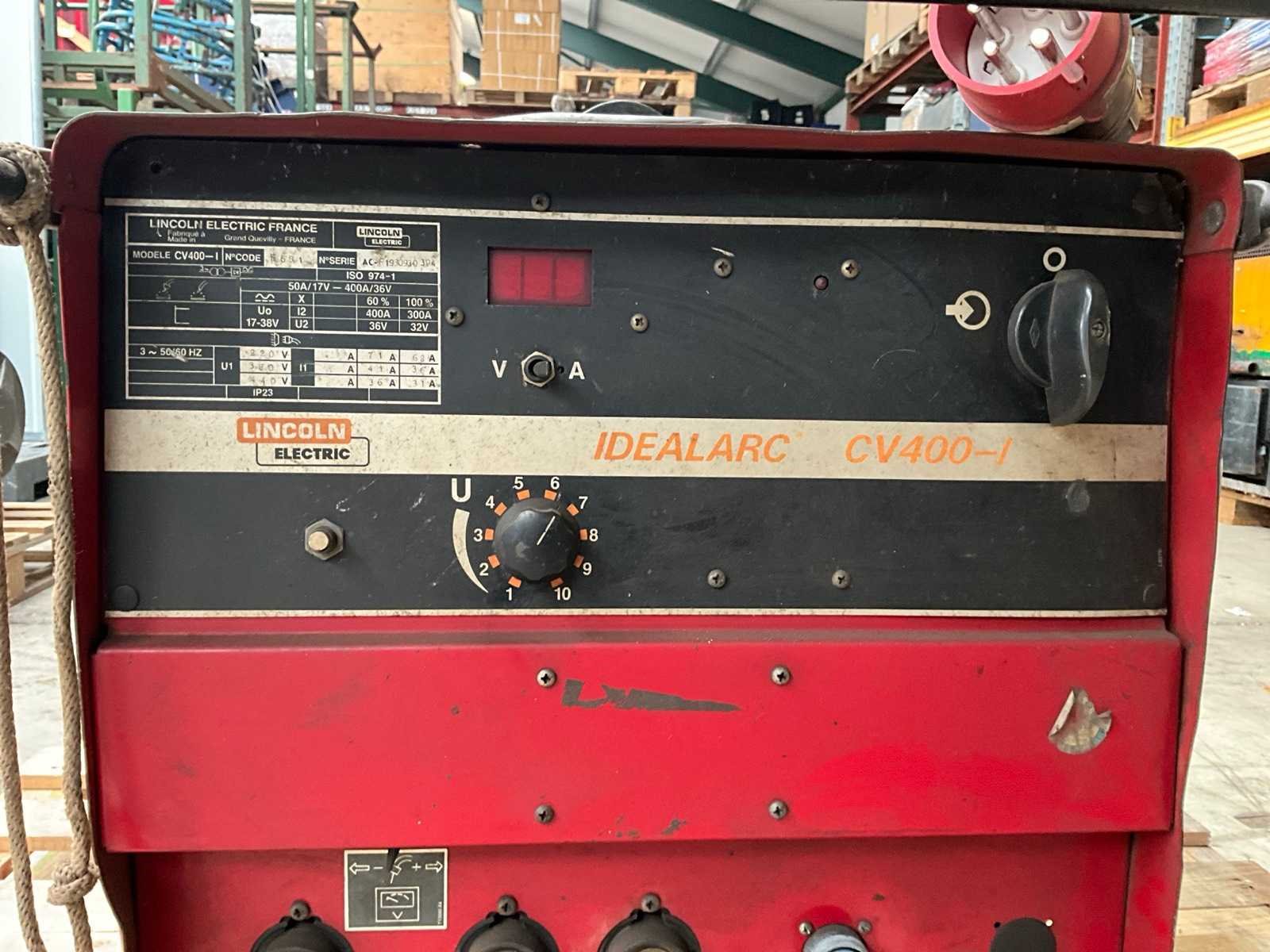 Cv400 mig stroombron Merk: Lincoln Electric Type: CV400 Inschakelduur: 60% Max. lasvermogen: 400A Aansluiting: 400V Digitale uitlezing: true Afmeting l: 750mm Afmeting b: 520mm Afmeting h: 560mm