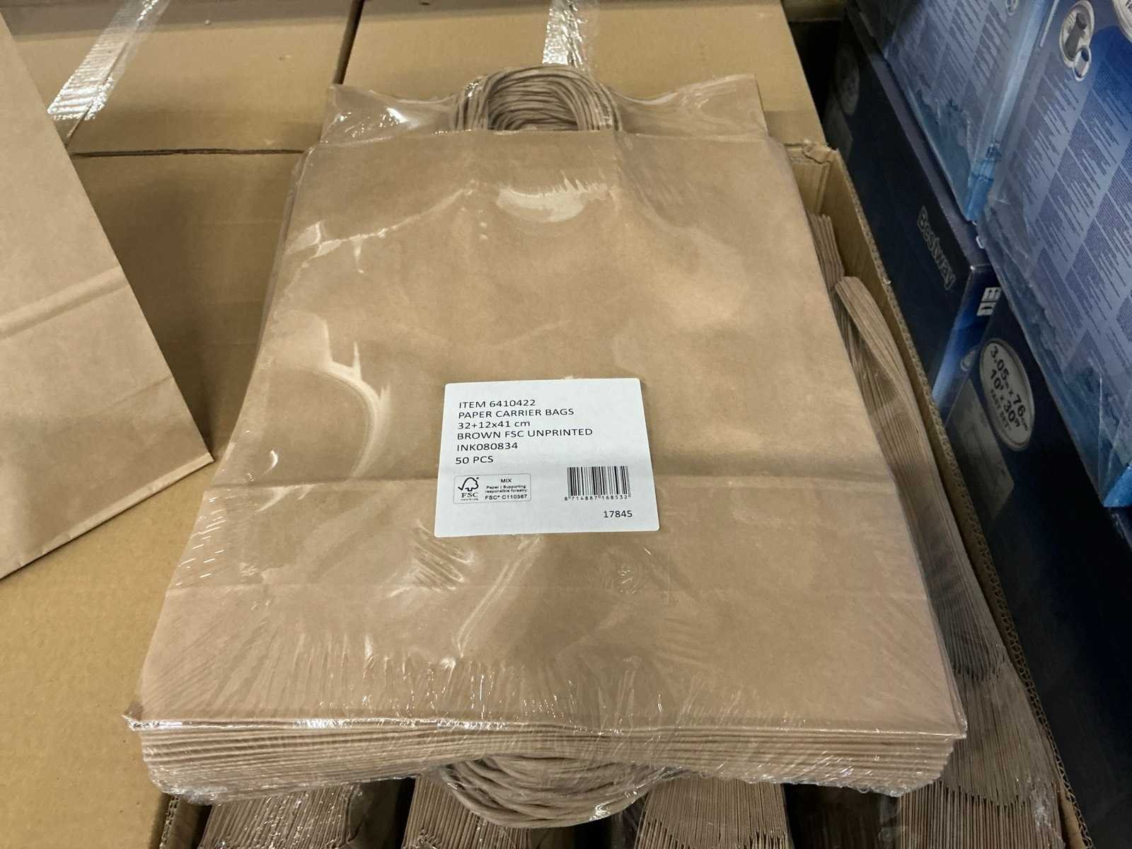 Partij paper carrier bags 32+12x41cm brown fsc unprinted (3000x)