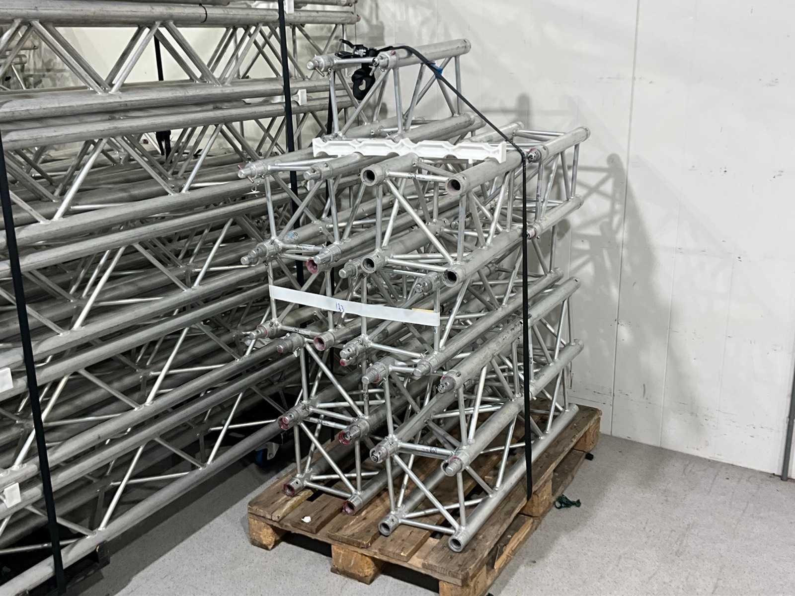 Bestaande uit circa: 11x Prolyte H30V L50, 11x Prolyte H30V L50, 3x Prolyte H30V L100, 1x Prolyte H30V L150, 12x Prolyte H30V L200, 1x Prolyte H30V L240, 1x Prolyte H30V L260, 6x Prolyte H30V L300. Merk: Prolyte Type: H30V Vierkant model: true