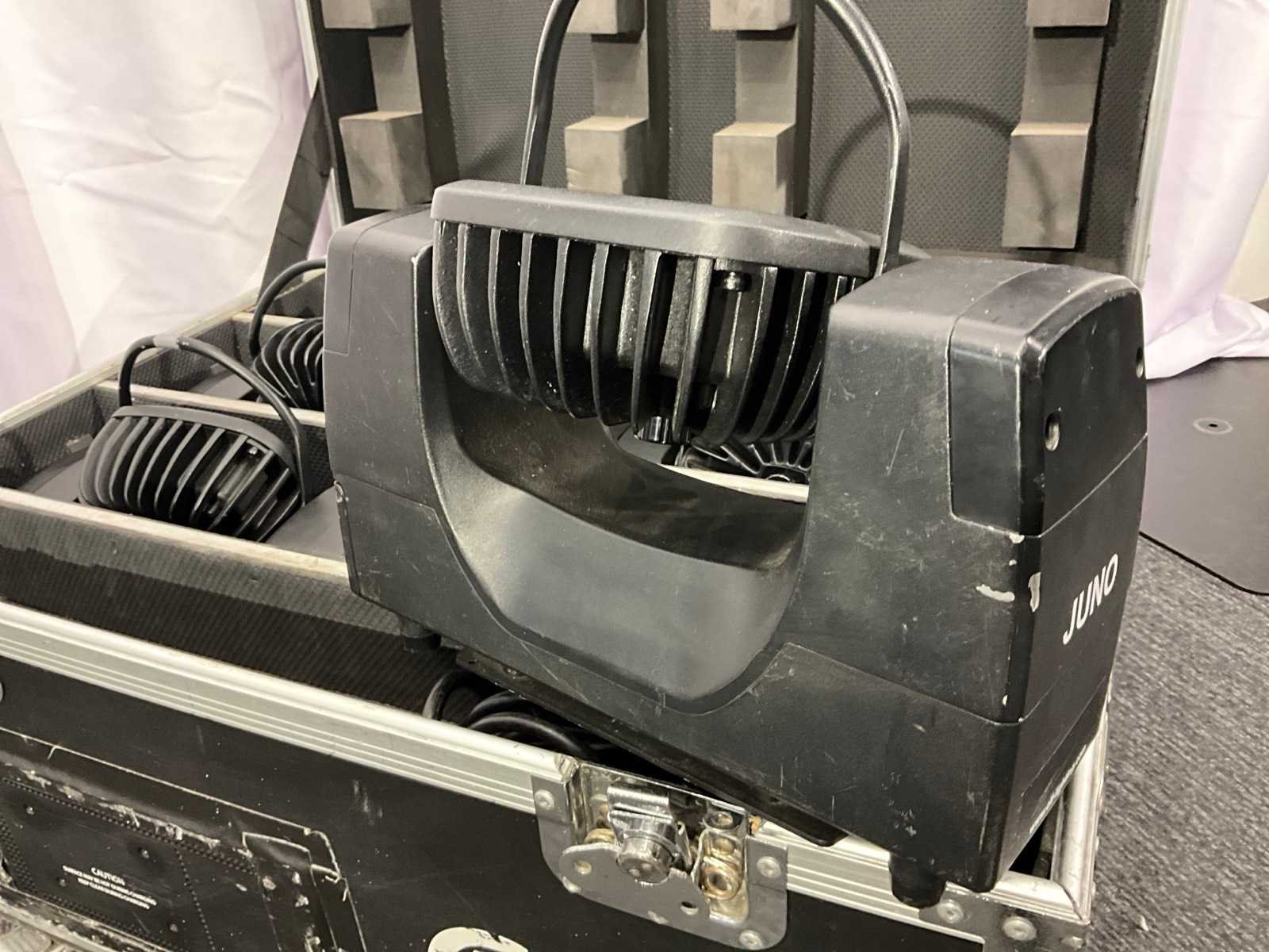 Voorzien van, RGBW LEDs (4x10W CREE), Wireless Solution draadloos DMX systeem. 4/6/10 kanalen, Handmatige zoom 15°-30°, Lithium accu’s, 4 verschillende dimmercurves, 6x 1.5m verloop Schuko naar powerCON. Merk: CLF Type: Juno LED: true Draadloze dmx: true Met flightcase: true