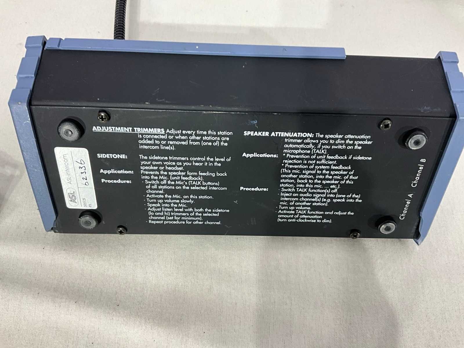 Bestaande uit: 1x ASL PS-278 Masterstation, 3x ASL PS-230 Speakerstation, 3x ASL Beltpack PS-19, 4x Punqtum Q960, 7x ASL HS2/D Headset Merk: ASL