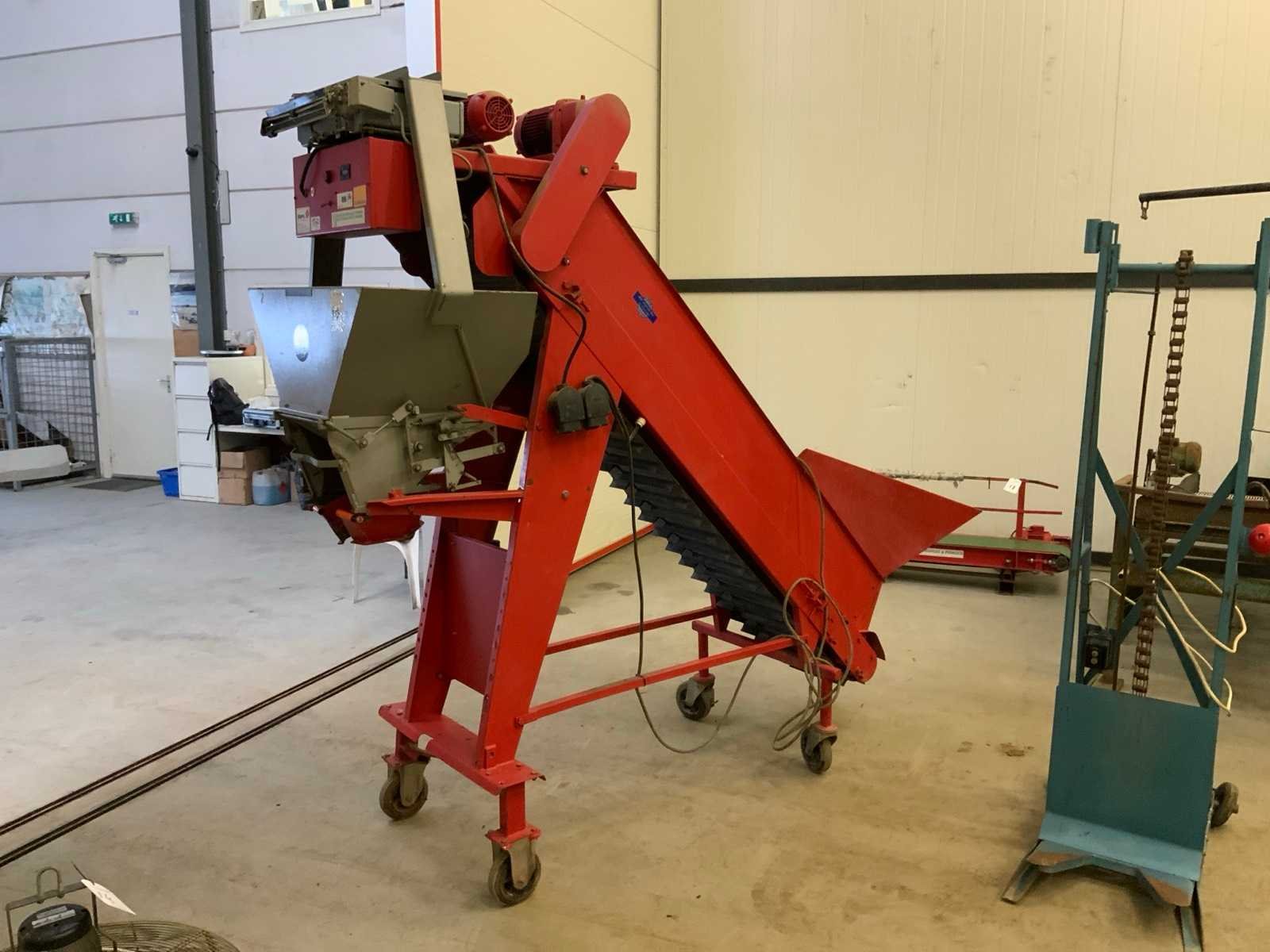 Verrijdbaar. voorzien van weeginrichting, capaciteit min. 1 kg / max. 50 kg, bandbreedte 330mm, vulband: 80mm. Voorzien van pneumatische afsluiter. Merk: de Lignie b.v. Serienummer: 0646 / 4110 Aansluiting: 380V Totale afmeting L: 2750mm Totale afmeting Breedte: 800mm Totale afmeting Hoogte: 2400mm