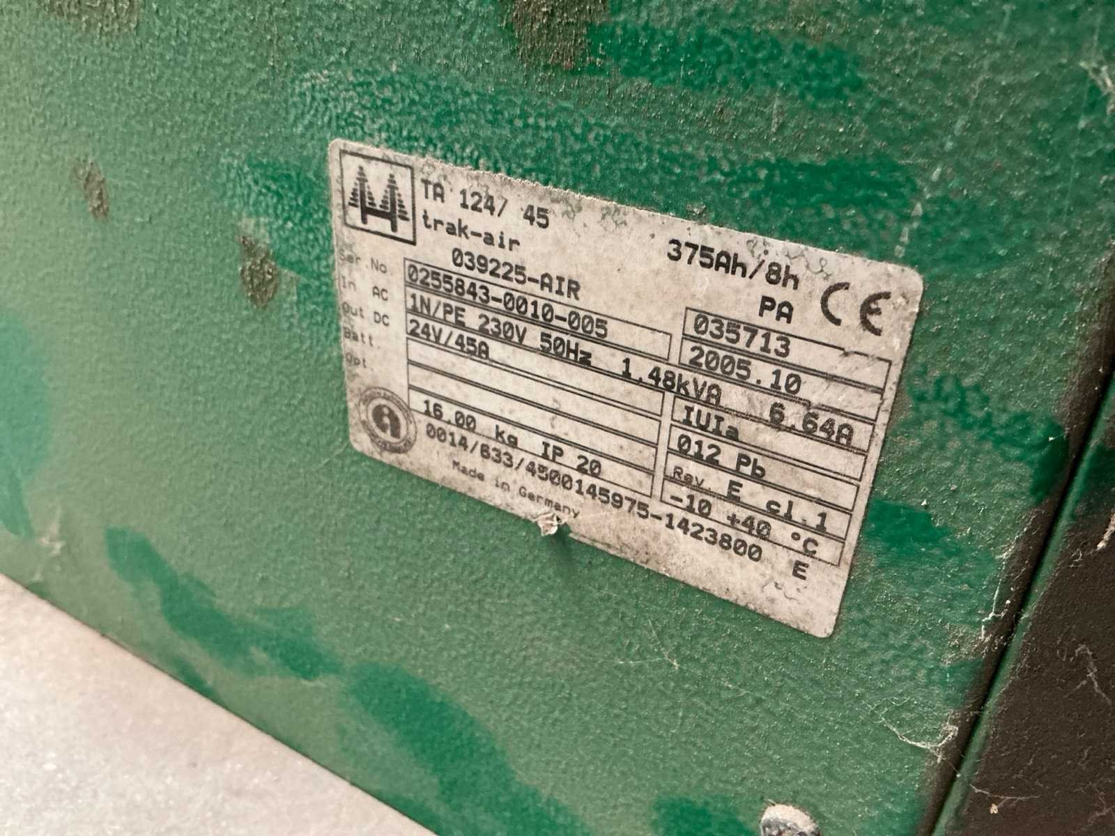 Merk: Hoppecke Type: TR 124/ 45 Serienummer: 0255843-0010-005 Aansluiting: 230V Totale afmeting L: 310mm Totale afmeting Breedte: 280mm Totale afmeting Hoogte: 400mm