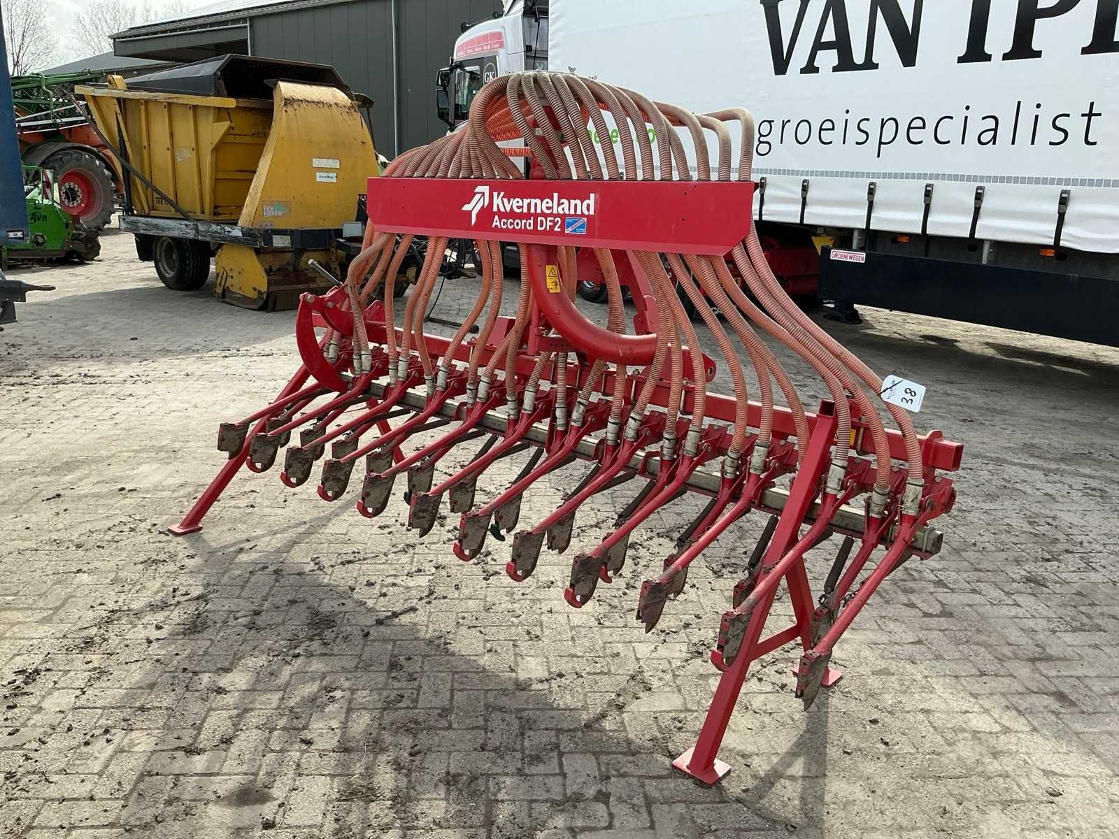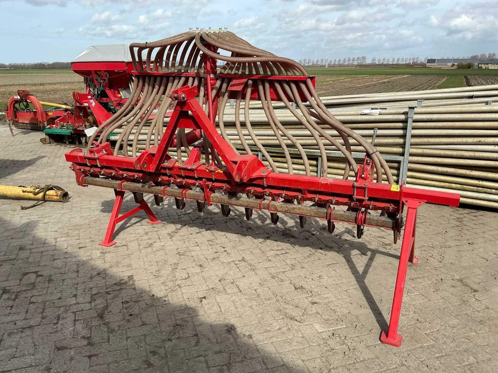 Met verdeelkop Ø 105mm aansluiting, driepunts inrichting. Voorzien van steunpoten. 24 rijen Merk: Kverneland Type: Accord DF2 Werkbreedte: 3000mm Totale afmeting L: 1400mm Totale afmeting Breedte: 3250mm Totale afmeting Hoogte: 2100mm
